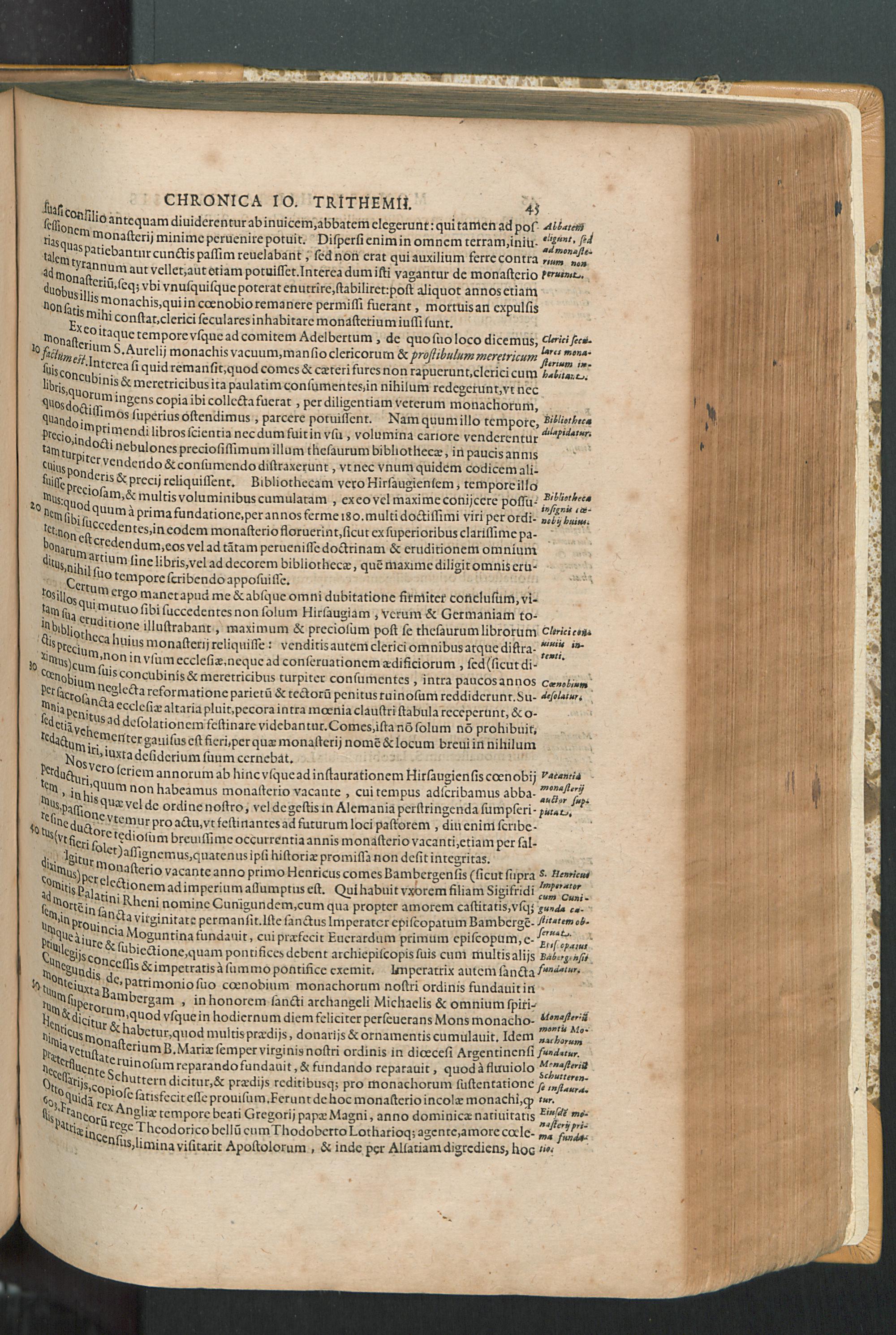 2 (1601) Iohannis Trithemii Spanheimensis Primo, Deinde D. Iacobi Maioris Apvd Herbipolin Abbatis, viri suo æuo doctissimi Secvndæ Partis Chronica Insignia Dvo : I. Coenobii Hirsavgiensis, Diœcesis Spirensis: eius fundationem & progressum ab Anno Christi DCCCXXX. vsque ad Annum MCCCLXX. II. Coenobii Spanheimensis, Diœcesis Moguntinensis: eius fundationem & progressum ab Anno Christi MCXXIIII. vsque ad Annum MDXXVI. vel potius res ab octo illis sæculis in tota Ecclesia & Imperio memorabiliter gestas, complectens; Qvorvm Privs Collatione Archetypi Ipsivs Auctoris manuscripti correctius & plenius; posterius verò istud nunc primùm è tenebris erutum, ob insignem vtilitatem optimâ fide in lucem editur; Accedunt Epistolæ eiusdem Familiares, ab excessu eius de cœnobio Spanheimensi ad Principes clarosque viros scriptæ, historiis eius æui referctæ