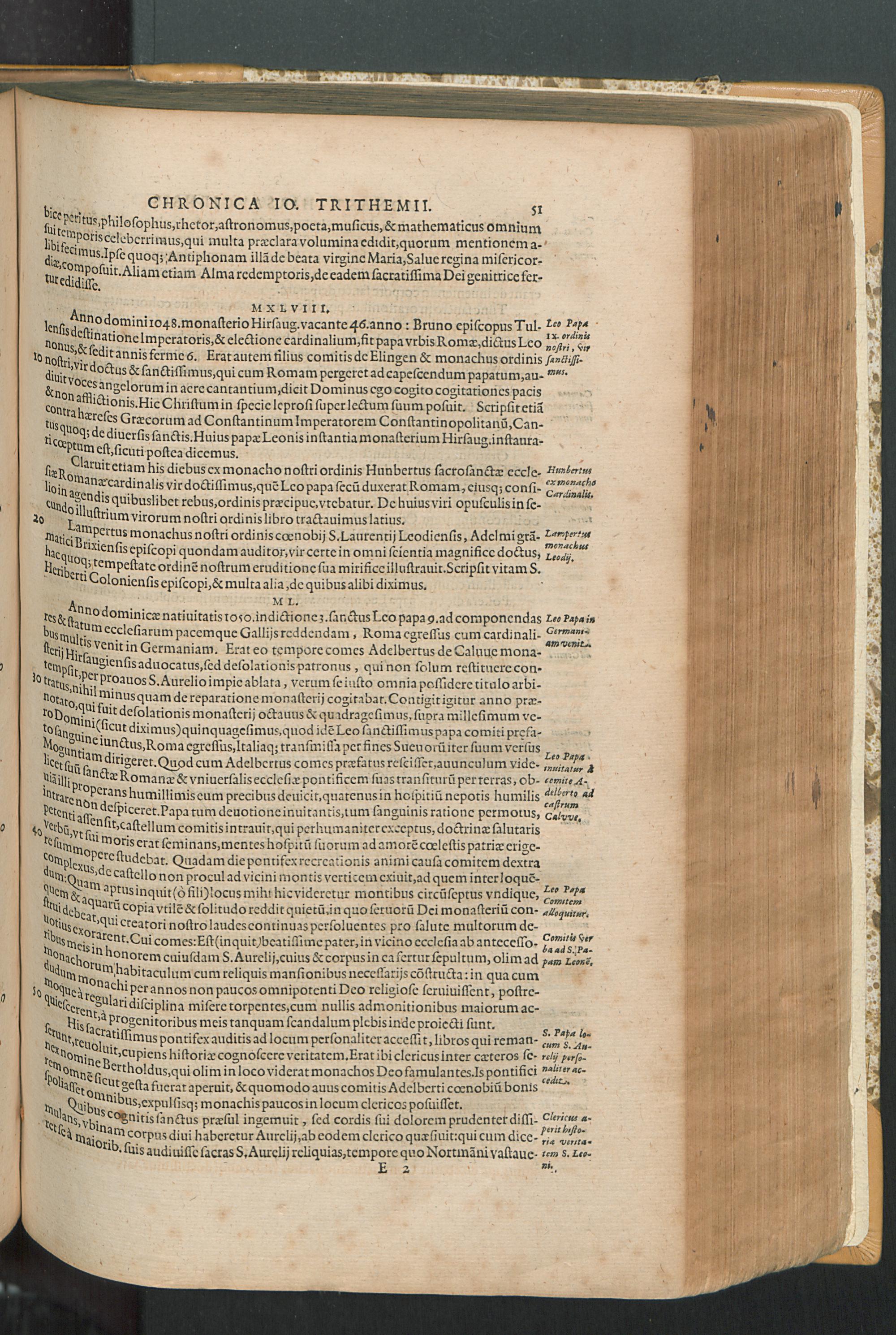 2 (1601) Iohannis Trithemii Spanheimensis Primo, Deinde D. Iacobi Maioris Apvd Herbipolin Abbatis, viri suo æuo doctissimi Secvndæ Partis Chronica Insignia Dvo : I. Coenobii Hirsavgiensis, Diœcesis Spirensis: eius fundationem & progressum ab Anno Christi DCCCXXX. vsque ad Annum MCCCLXX. II. Coenobii Spanheimensis, Diœcesis Moguntinensis: eius fundationem & progressum ab Anno Christi MCXXIIII. vsque ad Annum MDXXVI. vel potius res ab octo illis sæculis in tota Ecclesia & Imperio memorabiliter gestas, complectens; Qvorvm Privs Collatione Archetypi Ipsivs Auctoris manuscripti correctius & plenius; posterius verò istud nunc primùm è tenebris erutum, ob insignem vtilitatem optimâ fide in lucem editur; Accedunt Epistolæ eiusdem Familiares, ab excessu eius de cœnobio Spanheimensi ad Principes clarosque viros scriptæ, historiis eius æui referctæ
