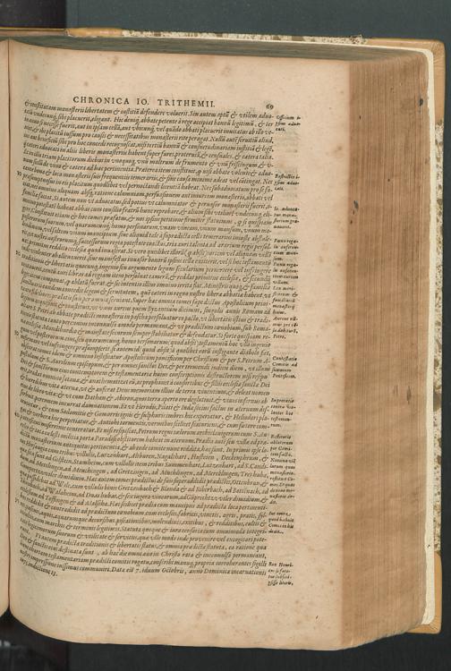 2 (1601) Iohannis Trithemii Spanheimensis Primo, Deinde D. Iacobi Maioris Apvd Herbipolin Abbatis, viri suo æuo doctissimi Secvndæ Partis Chronica Insignia Dvo : I. Coenobii Hirsavgiensis, Diœcesis Spirensis: eius fundationem & progressum ab Anno Christi DCCCXXX. vsque ad Annum MCCCLXX. II. Coenobii Spanheimensis, Diœcesis Moguntinensis: eius fundationem & progressum ab Anno Christi MCXXIIII. vsque ad Annum MDXXVI. vel potius res ab octo illis sæculis in tota Ecclesia & Imperio memorabiliter gestas, complectens; Qvorvm Privs Collatione Archetypi Ipsivs Auctoris manuscripti correctius & plenius; posterius verò istud nunc primùm è tenebris erutum, ob insignem vtilitatem optimâ fide in lucem editur; Accedunt Epistolæ eiusdem Familiares, ab excessu eius de cœnobio Spanheimensi ad Principes clarosque viros scriptæ, historiis eius æui referctæ