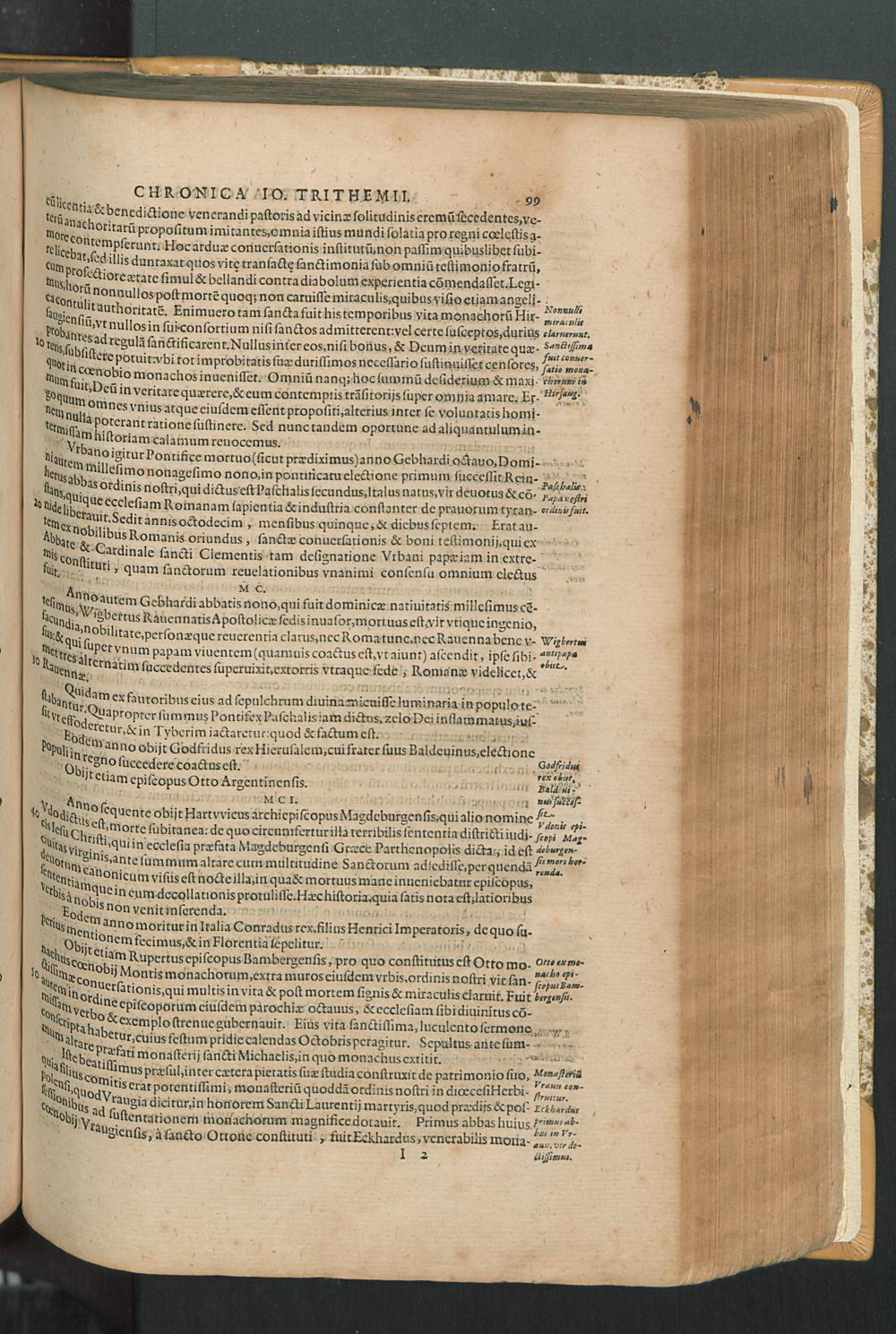 2 (1601) Iohannis Trithemii Spanheimensis Primo, Deinde D. Iacobi Maioris Apvd Herbipolin Abbatis, viri suo æuo doctissimi Secvndæ Partis Chronica Insignia Dvo : I. Coenobii Hirsavgiensis, Diœcesis Spirensis: eius fundationem & progressum ab Anno Christi DCCCXXX. vsque ad Annum MCCCLXX. II. Coenobii Spanheimensis, Diœcesis Moguntinensis: eius fundationem & progressum ab Anno Christi MCXXIIII. vsque ad Annum MDXXVI. vel potius res ab octo illis sæculis in tota Ecclesia & Imperio memorabiliter gestas, complectens; Qvorvm Privs Collatione Archetypi Ipsivs Auctoris manuscripti correctius & plenius; posterius verò istud nunc primùm è tenebris erutum, ob insignem vtilitatem optimâ fide in lucem editur; Accedunt Epistolæ eiusdem Familiares, ab excessu eius de cœnobio Spanheimensi ad Principes clarosque viros scriptæ, historiis eius æui referctæ