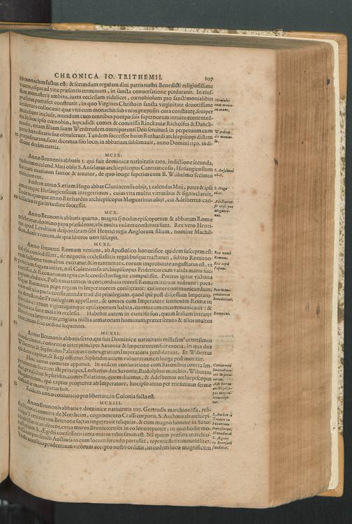 2 (1601) Iohannis Trithemii Spanheimensis Primo, Deinde D. Iacobi Maioris Apvd Herbipolin Abbatis, viri suo æuo doctissimi Secvndæ Partis Chronica Insignia Dvo : I. Coenobii Hirsavgiensis, Diœcesis Spirensis: eius fundationem & progressum ab Anno Christi DCCCXXX. vsque ad Annum MCCCLXX. II. Coenobii Spanheimensis, Diœcesis Moguntinensis: eius fundationem & progressum ab Anno Christi MCXXIIII. vsque ad Annum MDXXVI. vel potius res ab octo illis sæculis in tota Ecclesia & Imperio memorabiliter gestas, complectens; Qvorvm Privs Collatione Archetypi Ipsivs Auctoris manuscripti correctius & plenius; posterius verò istud nunc primùm è tenebris erutum, ob insignem vtilitatem optimâ fide in lucem editur; Accedunt Epistolæ eiusdem Familiares, ab excessu eius de cœnobio Spanheimensi ad Principes clarosque viros scriptæ, historiis eius æui referctæ