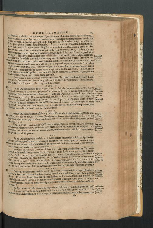 2 (1601) Iohannis Trithemii Spanheimensis Primo, Deinde D. Iacobi Maioris Apvd Herbipolin Abbatis, viri suo æuo doctissimi Secvndæ Partis Chronica Insignia Dvo : I. Coenobii Hirsavgiensis, Diœcesis Spirensis: eius fundationem & progressum ab Anno Christi DCCCXXX. vsque ad Annum MCCCLXX. II. Coenobii Spanheimensis, Diœcesis Moguntinensis: eius fundationem & progressum ab Anno Christi MCXXIIII. vsque ad Annum MDXXVI. vel potius res ab octo illis sæculis in tota Ecclesia & Imperio memorabiliter gestas, complectens; Qvorvm Privs Collatione Archetypi Ipsivs Auctoris manuscripti correctius & plenius; posterius verò istud nunc primùm è tenebris erutum, ob insignem vtilitatem optimâ fide in lucem editur; Accedunt Epistolæ eiusdem Familiares, ab excessu eius de cœnobio Spanheimensi ad Principes clarosque viros scriptæ, historiis eius æui referctæ
