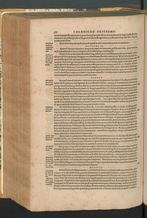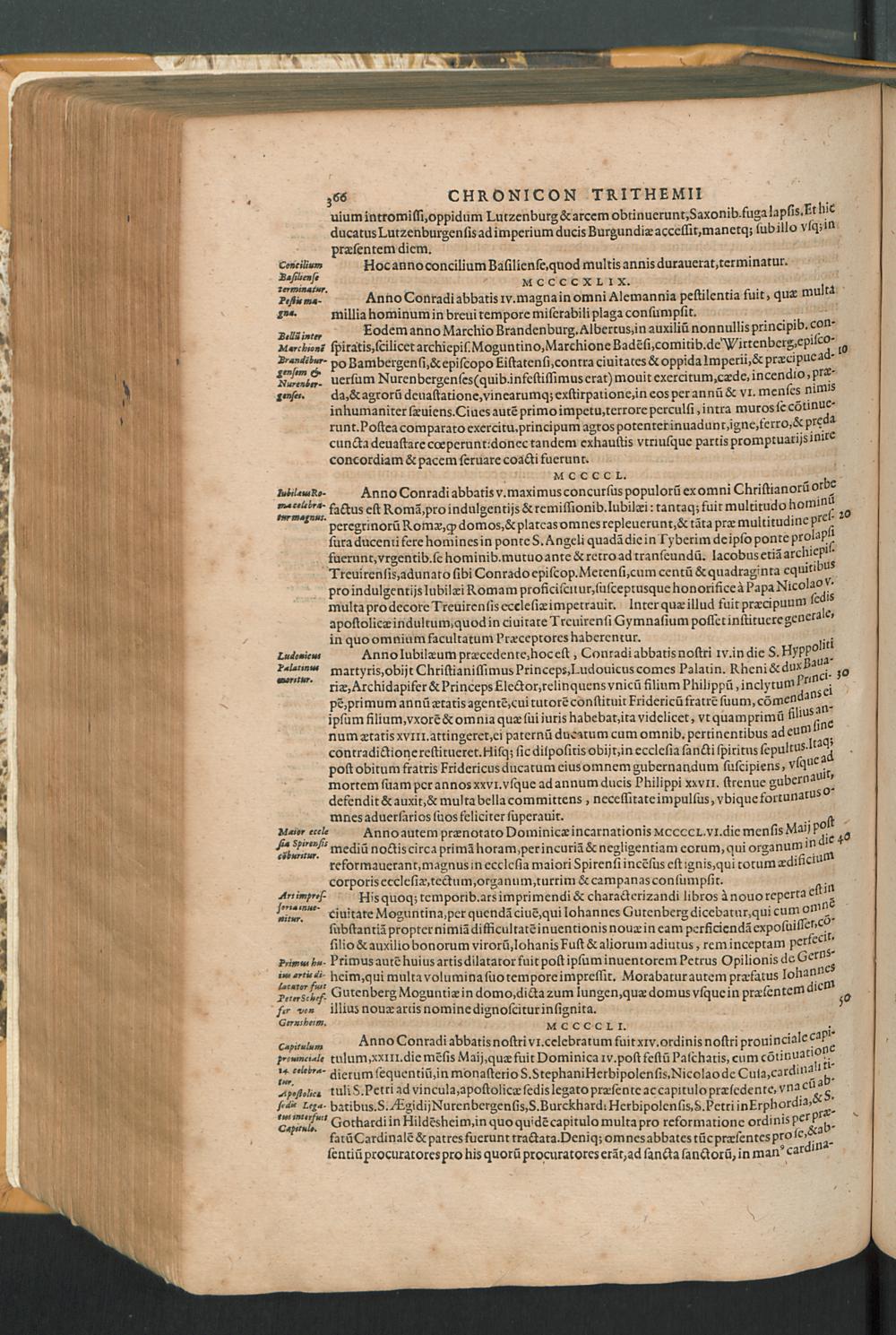 2 (1601) Iohannis Trithemii Spanheimensis Primo, Deinde D. Iacobi Maioris Apvd Herbipolin Abbatis, viri suo æuo doctissimi Secvndæ Partis Chronica Insignia Dvo : I. Coenobii Hirsavgiensis, Diœcesis Spirensis: eius fundationem & progressum ab Anno Christi DCCCXXX. vsque ad Annum MCCCLXX. II. Coenobii Spanheimensis, Diœcesis Moguntinensis: eius fundationem & progressum ab Anno Christi MCXXIIII. vsque ad Annum MDXXVI. vel potius res ab octo illis sæculis in tota Ecclesia & Imperio memorabiliter gestas, complectens; Qvorvm Privs Collatione Archetypi Ipsivs Auctoris manuscripti correctius & plenius; posterius verò istud nunc primùm è tenebris erutum, ob insignem vtilitatem optimâ fide in lucem editur; Accedunt Epistolæ eiusdem Familiares, ab excessu eius de cœnobio Spanheimensi ad Principes clarosque viros scriptæ, historiis eius æui referctæ