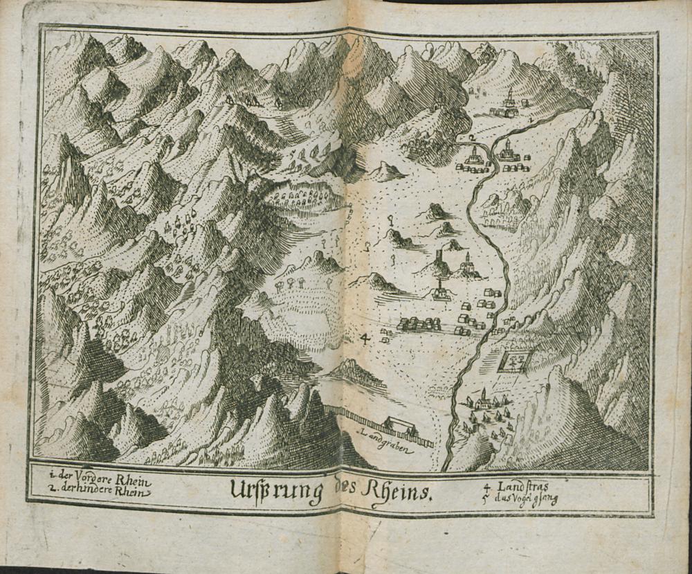 [1] (1689) Rhenus Fluminum Princeps, De Montibus Rhetiae Oriens, & ad Unionem Neccari currens. Oder: Der vortreffliche grosse Wasser-Strom der Rhein/ Von seinem Ursprung/ biß zum Einfluß deß Neckarstroms