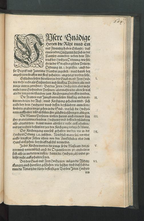 Vnsere Gnädige Herren die Räht vnnd Ein vnd Zwantzig haben Erkandt/ daß einem jeden Hochzeiter der sich in der Cantzley anmeldet/ neben dem Abtruck der Hochzeit Ordnung/ ... auch dieser Begriff vnd Interims Mandat zugestelt/ vnnd darob bey angesetzten straffen mit fleiß zuhalten/ angezeigt werden solle : [Decretum Mittwochs den 4. Novembris Anno 1640.]