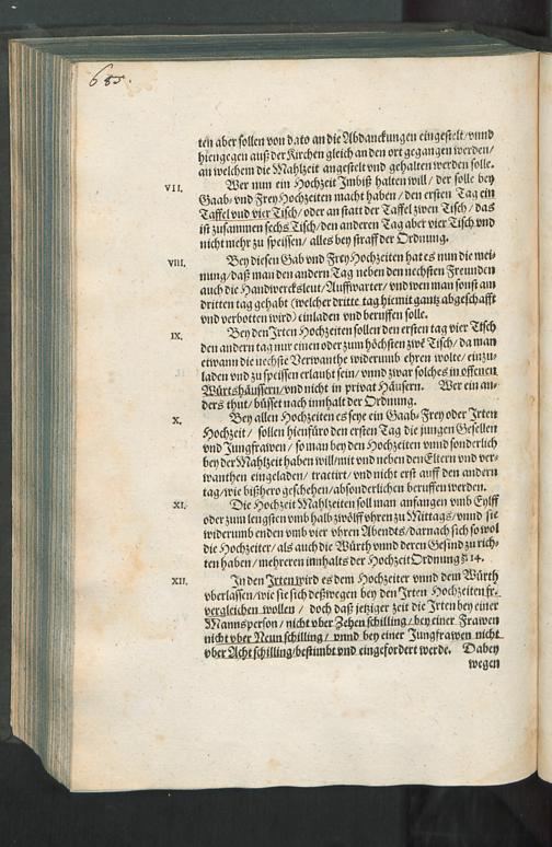 Vnsere Gnädige Herren die Räht vnnd Ein vnd Zwantzig haben Erkandt/ daß einem jeden Hochzeiter der sich in der Cantzley anmeldet/ neben dem Abtruck der Hochzeit Ordnung/ ... auch dieser Begriff vnd Interims Mandat zugestelt/ vnnd darob bey angesetzten straffen mit fleiß zuhalten/ angezeigt werden solle : [Decretum Mittwochs den 4. Novembris Anno 1640.]