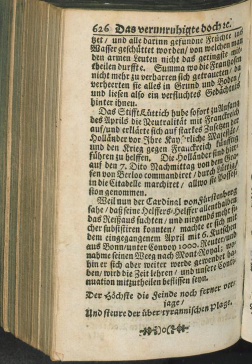 [1] (1689) Das Von Frankreich zwar verunruhigte doch dabey allarte Teutschland/ Oder Kurtze und warhaffte Vorstellung alles deßjenigen/ was von dem Einfall der Frantzösischen Armee in Teutschland am Rhein An. 1688. an/ bis in den Mertzen des 1689. Jahrs/ sich sowol in Ober- als Nieder-Teutschland Merk-würdiges zugetragen/ wie übel die Frantzosen allenthalben gehauset/ und aus unterschiedlichen Orten/ durch die Kayserliche/ Chur-Bayerische/ Chur-Sächsische und Chur-Brandenburgische Armeen verjaget worden ...