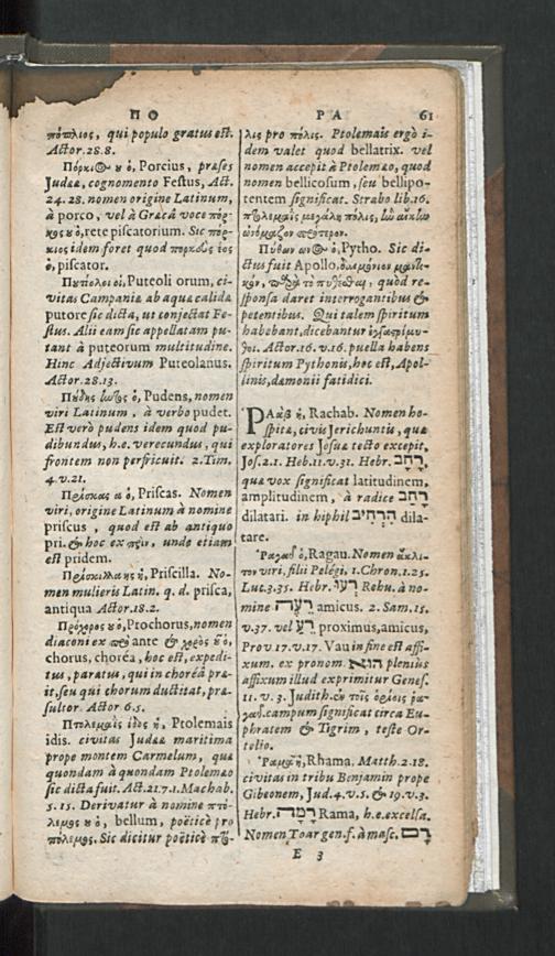 Etyma Nominum Propriorum : Itemque Analysis Hebraeorum, Syriacorum, & Latinorum vocabulorum, quae in novo Testamento uspiam occurrunt / Avthore Georgio Pasore