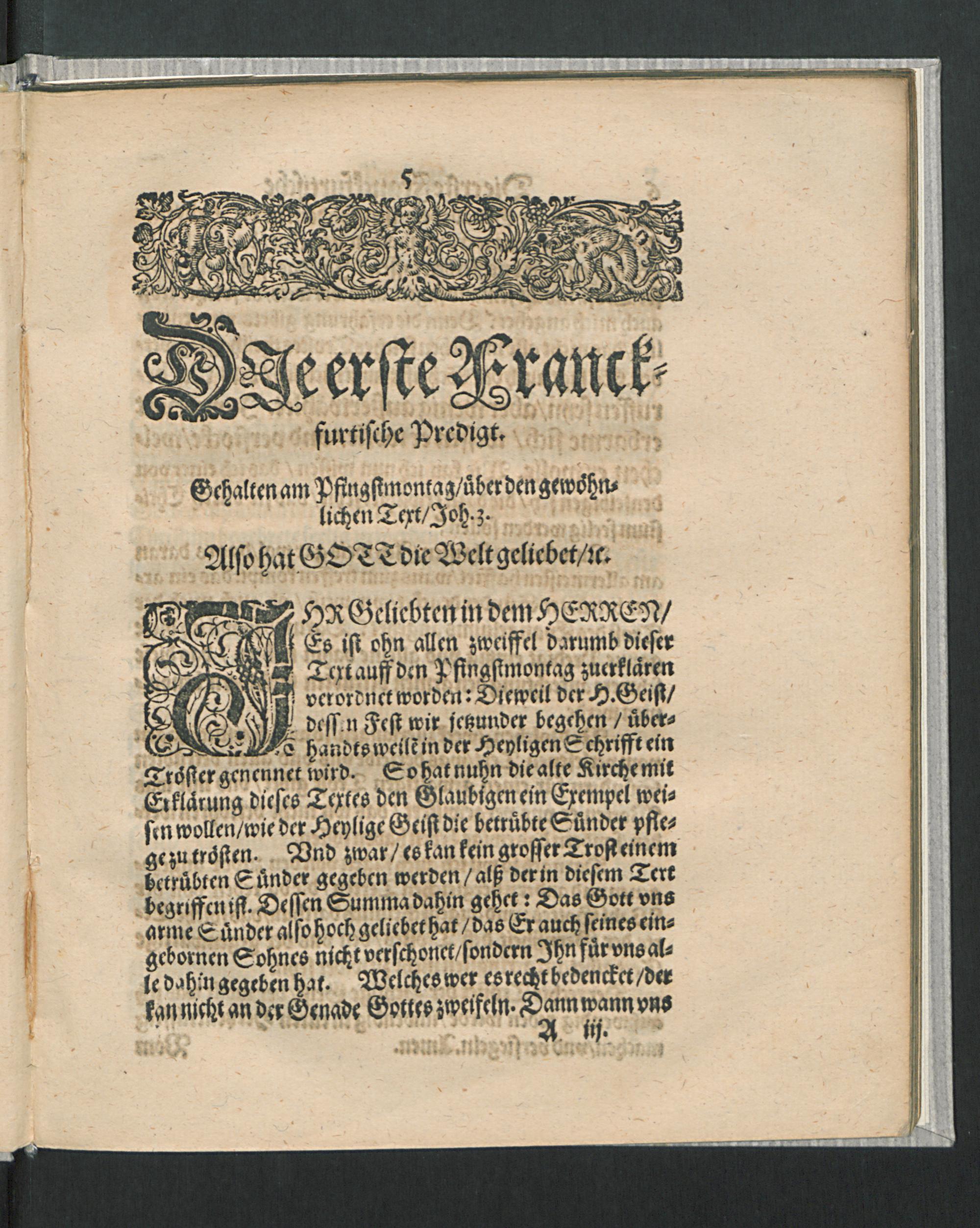 Drey Franckfurtische Predigten : Die eine von dem Spruch/ Also hat Gott die Welt geliebet/ [et]c. Die Andere/ Von der Widergeburt. Die Dritte/ Von der Gerechtigkeit deß Glaubens / Auff dem Keyserlichen Wahltag daselbst gehalten Durch Bartholomaeum Pitiscum Churfürstlicher Pfaltz Hoffpredigern. Anno 1612. den 1. 7. vnd 10. Iunij