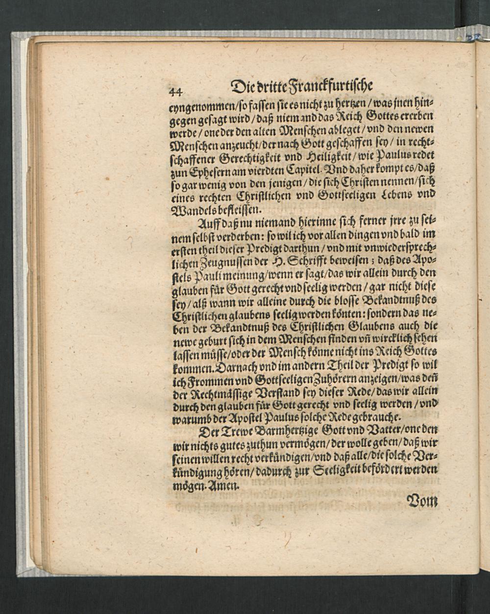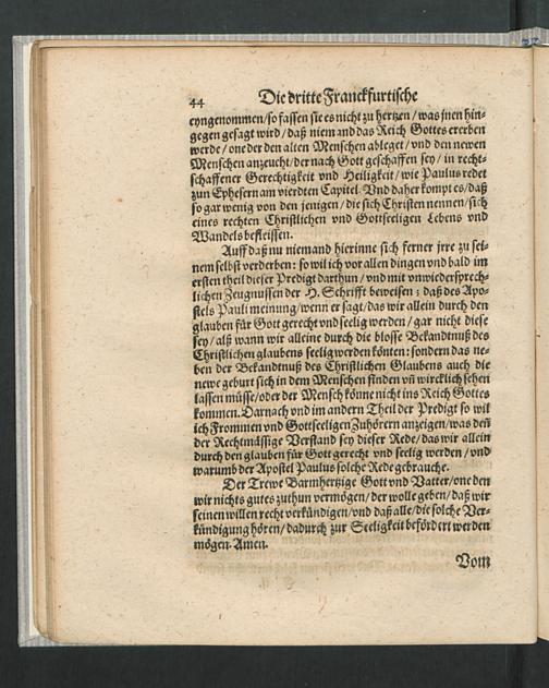 Drey Franckfurtische Predigten : Die eine von dem Spruch/ Also hat Gott die Welt geliebet/ [et]c. Die Andere/ Von der Widergeburt. Die Dritte/ Von der Gerechtigkeit deß Glaubens / Auff dem Keyserlichen Wahltag daselbst gehalten Durch Bartholomaeum Pitiscum Churfürstlicher Pfaltz Hoffpredigern. Anno 1612. den 1. 7. vnd 10. Iunij