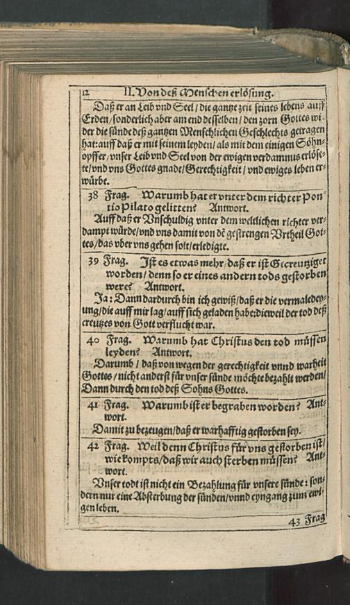 Catechismus, Oder Kurtzer Unterricht/ Christlicher Lehr/ wie der in der Kirchen unnd Schulen der Churfürstlichen Pfaltz getrieben wirdt : Sampt den XX. Fragen/ Sprüchen/ und Kirchen Legenden