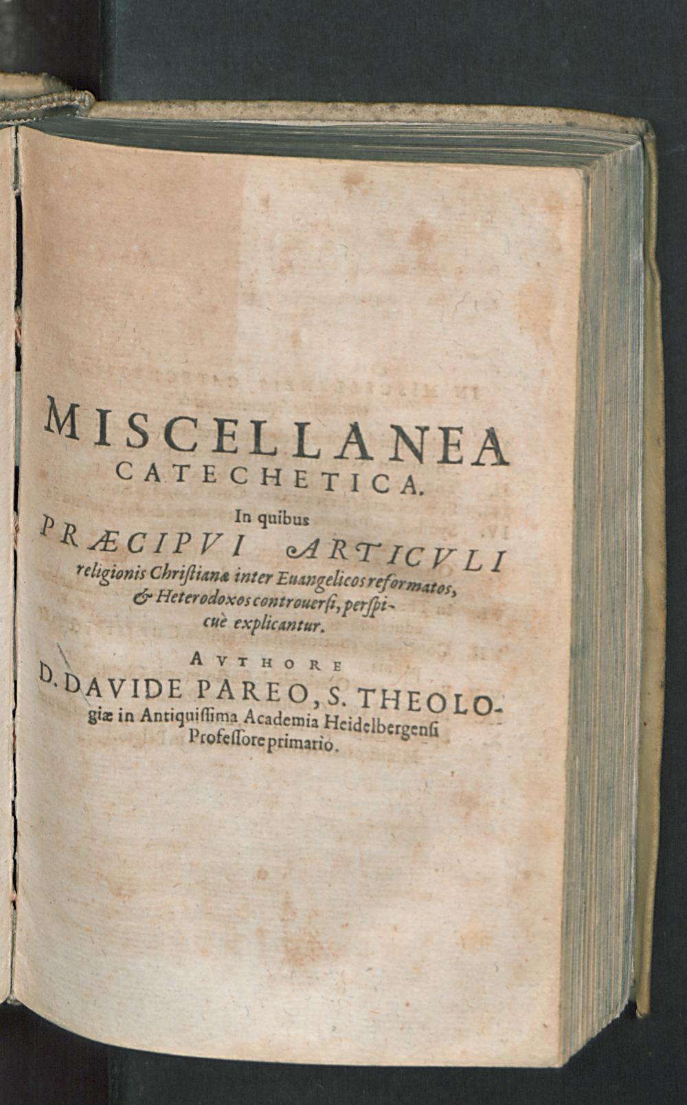 Corpvs Doctrinae Christianae Ecclesiarum à Papatv Romano reformatarum : Ex ore quondam Magni Theologi D. Zachariae Vrsini in explicationibus Catecheticis rudi Minervâ exceptum: ac postea crebris Editionibus auctum, castigatum, & consummatum / A venerabili Theologo D. Davide Pareo: Antiquissimae Academiae Heidelbergensis olim Professore primario