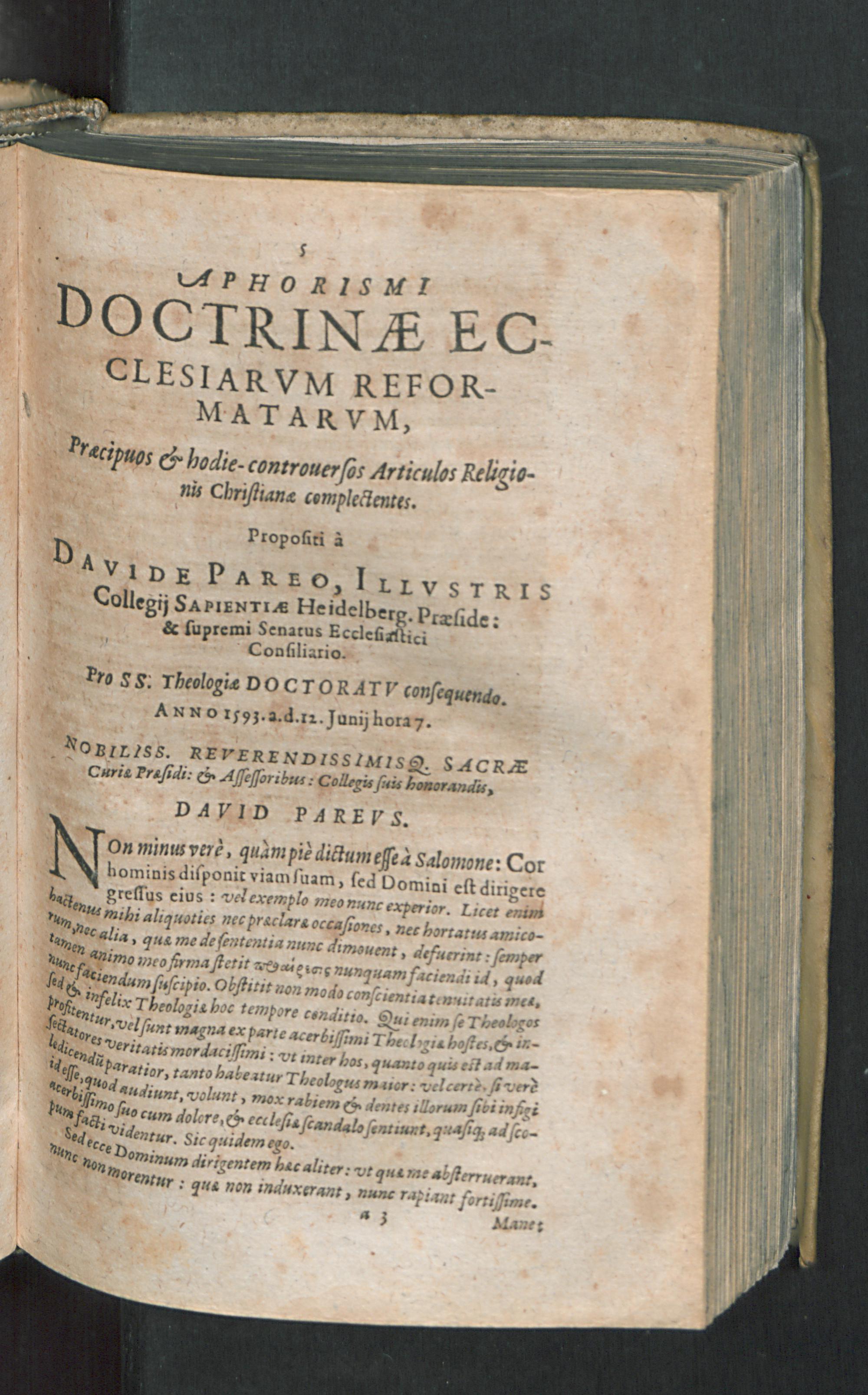 Corpvs Doctrinae Christianae Ecclesiarum à Papatv Romano reformatarum : Ex ore quondam Magni Theologi D. Zachariae Vrsini in explicationibus Catecheticis rudi Minervâ exceptum: ac postea crebris Editionibus auctum, castigatum, & consummatum / A venerabili Theologo D. Davide Pareo: Antiquissimae Academiae Heidelbergensis olim Professore primario