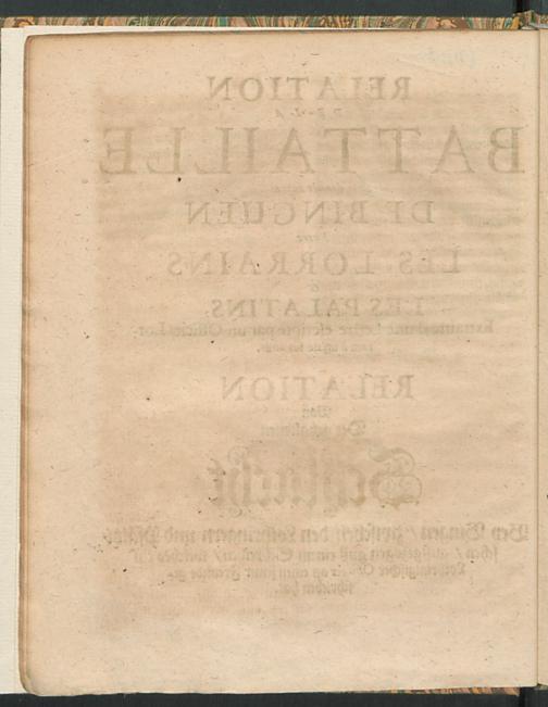 Relation De Ce qui s'est passé Au Combat donné le 16. 26. de Septembre 1668. Entre Les Trouppes De Son Altesse Electorale Palatine. & celles de Mr. Le Duc De Lorraine