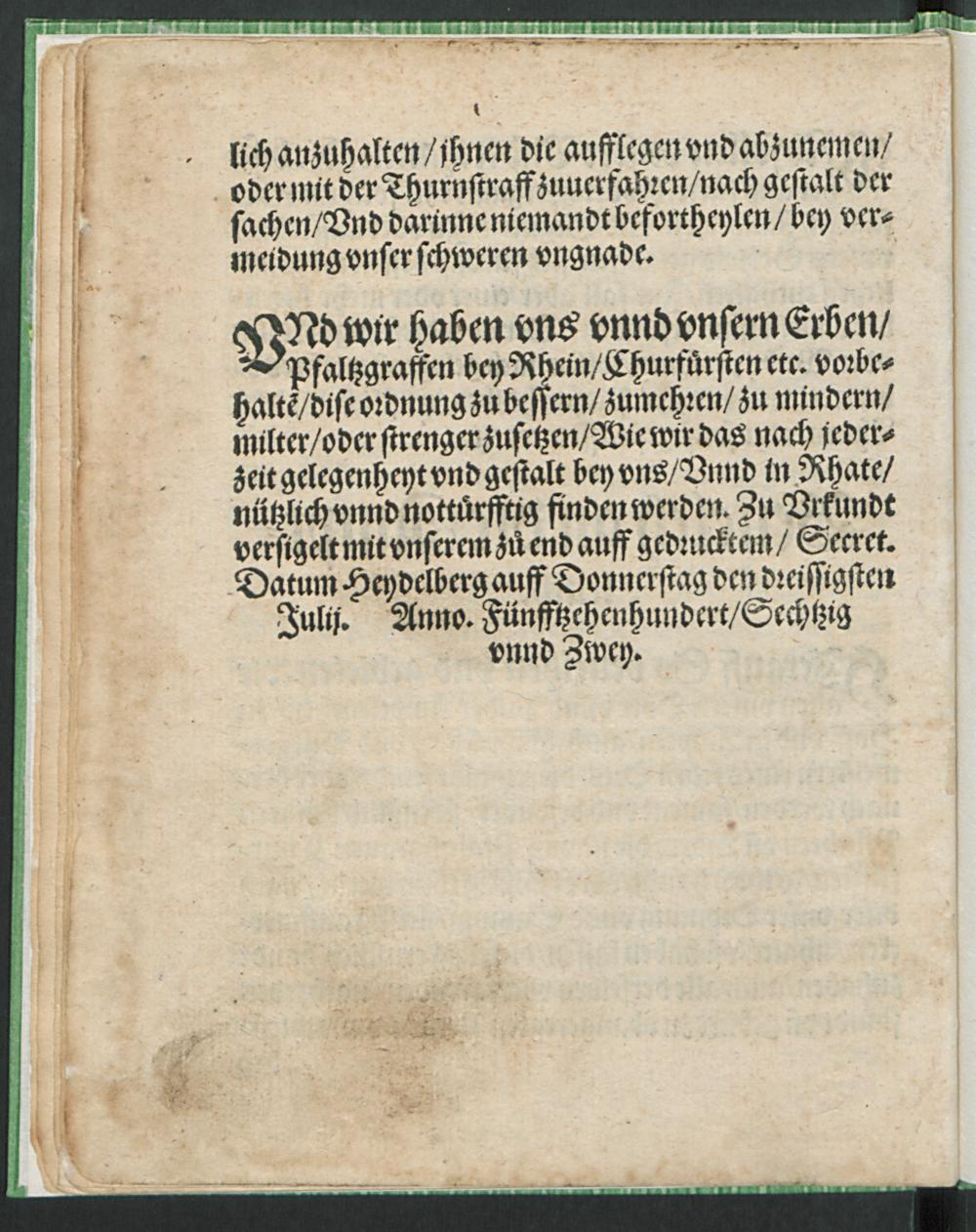 Pfaltzgraue Friderichs || Churfürstens/ etc. auff gerichte || Christliche Pollicey Ord=||nung.||