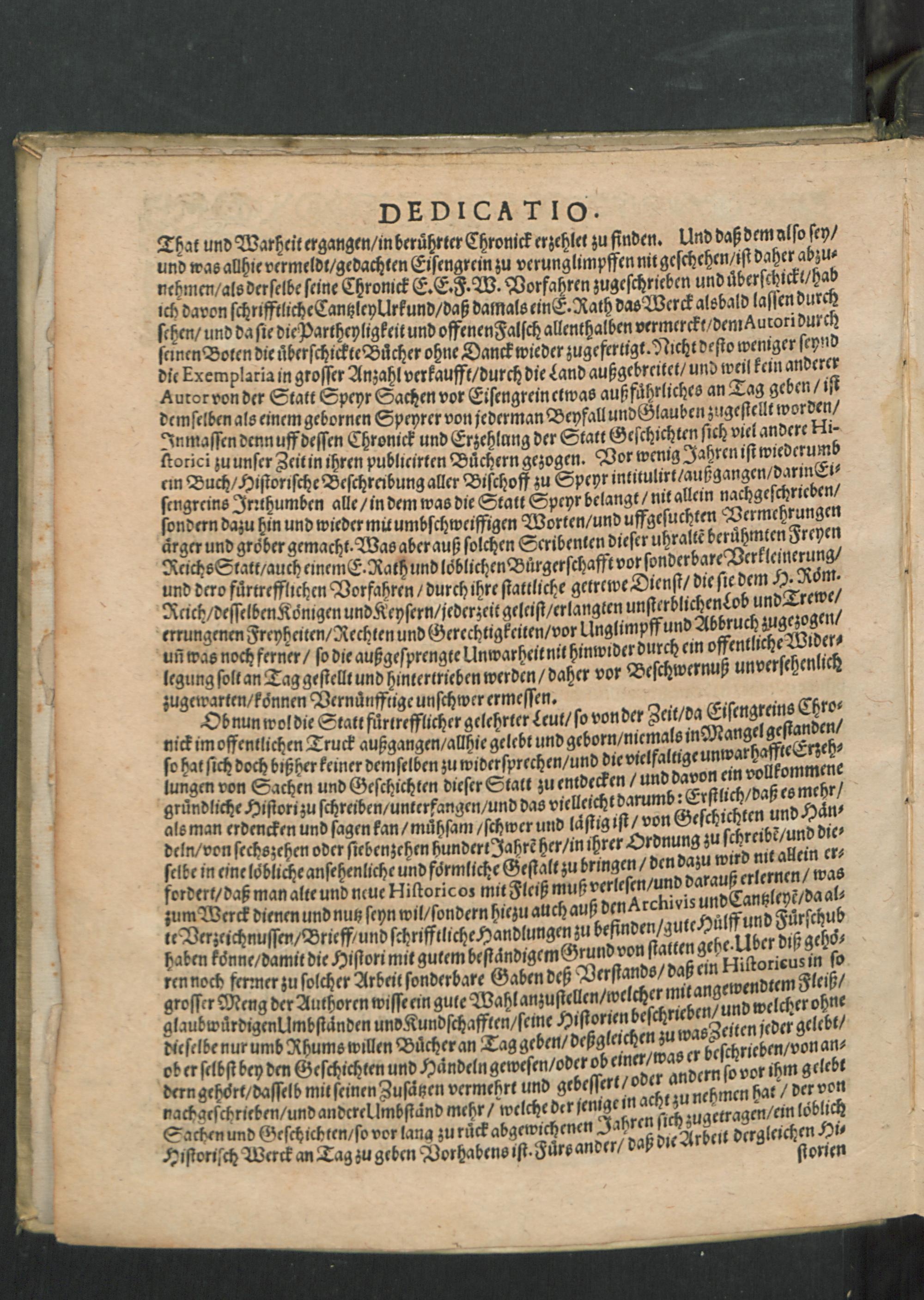 Chronica Der Freyen Reichs-Statt Speyer : Darinn von dreyerley fürnemblich gehandelt/ Erstlich vom Ursprung/ Auffnehmen/ Befreyung/ Beschaffenheit deß Regiments/ Freyheiten/ Privilegien/ Rechten/ Gerechtigkeiten/ denckwürdigen Sachen und Geschichten/ auch underschiedlichen Kriegen und Belägerungen der Statt Speyr: Zum andern/ von Anfang und Auffrichtung deß Teutschen Reichs/ desselben Regierung durch König und Kayser/ und was es jeder Zeit ins gemein mit demselben/ und insonders mit den Ehrbahren Frey und Reichs-Stätten vor Gestalt gehabt... Zum dritten/ von Anfang und Beschreibung der Bischoffen zu Speyr/ und deß Speyrischen Bisthumbs / Mit Fleiß zusammen getragen Durch Christophorum Lehmann