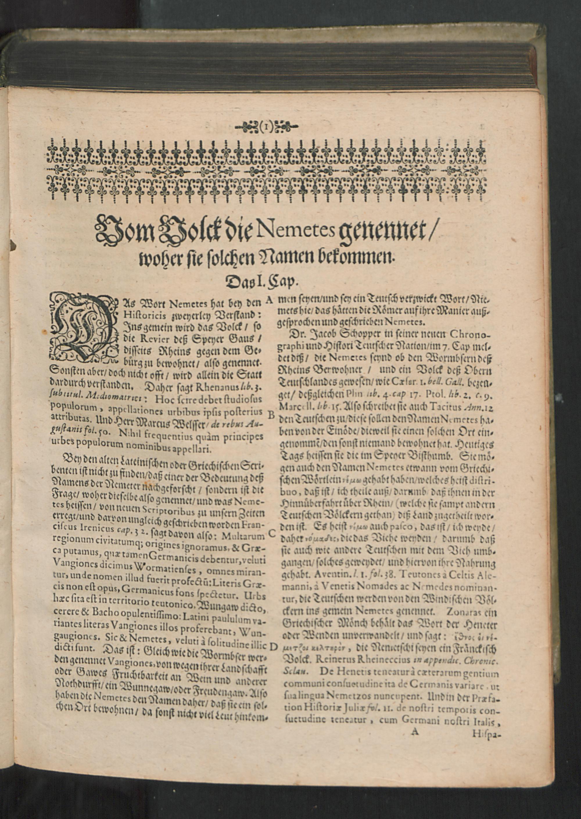 Chronica Der Freyen Reichs-Statt Speyer : Darinn von dreyerley fürnemblich gehandelt/ Erstlich vom Ursprung/ Auffnehmen/ Befreyung/ Beschaffenheit deß Regiments/ Freyheiten/ Privilegien/ Rechten/ Gerechtigkeiten/ denckwürdigen Sachen und Geschichten/ auch underschiedlichen Kriegen und Belägerungen der Statt Speyr: Zum andern/ von Anfang und Auffrichtung deß Teutschen Reichs/ desselben Regierung durch König und Kayser/ und was es jeder Zeit ins gemein mit demselben/ und insonders mit den Ehrbahren Frey und Reichs-Stätten vor Gestalt gehabt... Zum dritten/ von Anfang und Beschreibung der Bischoffen zu Speyr/ und deß Speyrischen Bisthumbs / Mit Fleiß zusammen getragen Durch Christophorum Lehmann