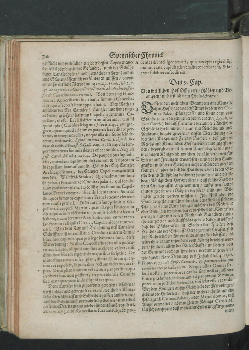 Chronica Der Freyen Reichs-Statt Speyer : Darinn von dreyerley fürnemblich gehandelt/ Erstlich vom Ursprung/ Auffnehmen/ Befreyung/ Beschaffenheit deß Regiments/ Freyheiten/ Privilegien/ Rechten/ Gerechtigkeiten/ denckwürdigen Sachen und Geschichten/ auch underschiedlichen Kriegen und Belägerungen der Statt Speyr: Zum andern/ von Anfang und Auffrichtung deß Teutschen Reichs/ desselben Regierung durch König und Kayser/ und was es jeder Zeit ins gemein mit demselben/ und insonders mit den Ehrbahren Frey und Reichs-Stätten vor Gestalt gehabt... Zum dritten/ von Anfang und Beschreibung der Bischoffen zu Speyr/ und deß Speyrischen Bisthumbs / Mit Fleiß zusammen getragen Durch Christophorum Lehmann