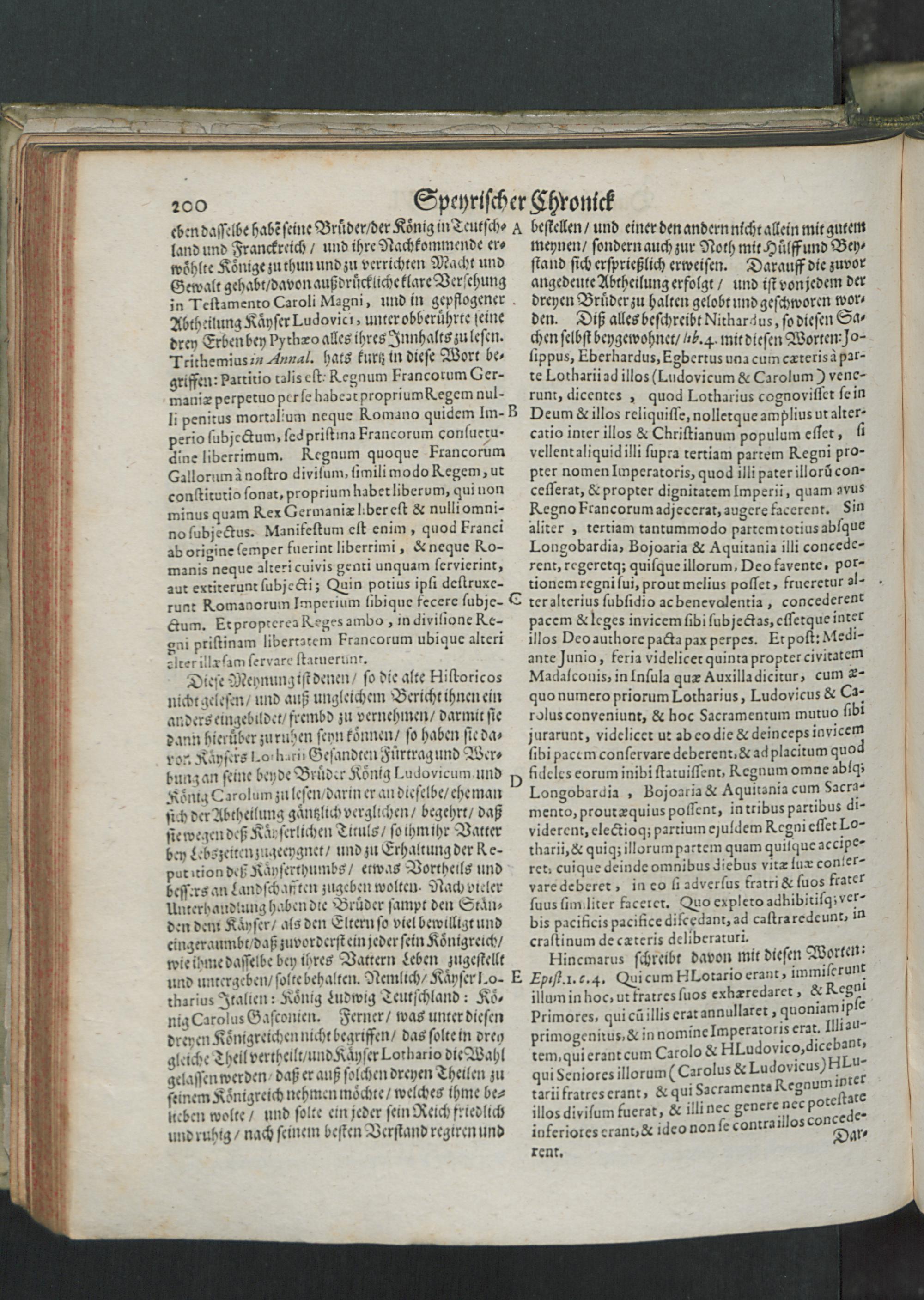 Chronica Der Freyen Reichs-Statt Speyer : Darinn von dreyerley fürnemblich gehandelt/ Erstlich vom Ursprung/ Auffnehmen/ Befreyung/ Beschaffenheit deß Regiments/ Freyheiten/ Privilegien/ Rechten/ Gerechtigkeiten/ denckwürdigen Sachen und Geschichten/ auch underschiedlichen Kriegen und Belägerungen der Statt Speyr: Zum andern/ von Anfang und Auffrichtung deß Teutschen Reichs/ desselben Regierung durch König und Kayser/ und was es jeder Zeit ins gemein mit demselben/ und insonders mit den Ehrbahren Frey und Reichs-Stätten vor Gestalt gehabt... Zum dritten/ von Anfang und Beschreibung der Bischoffen zu Speyr/ und deß Speyrischen Bisthumbs / Mit Fleiß zusammen getragen Durch Christophorum Lehmann
