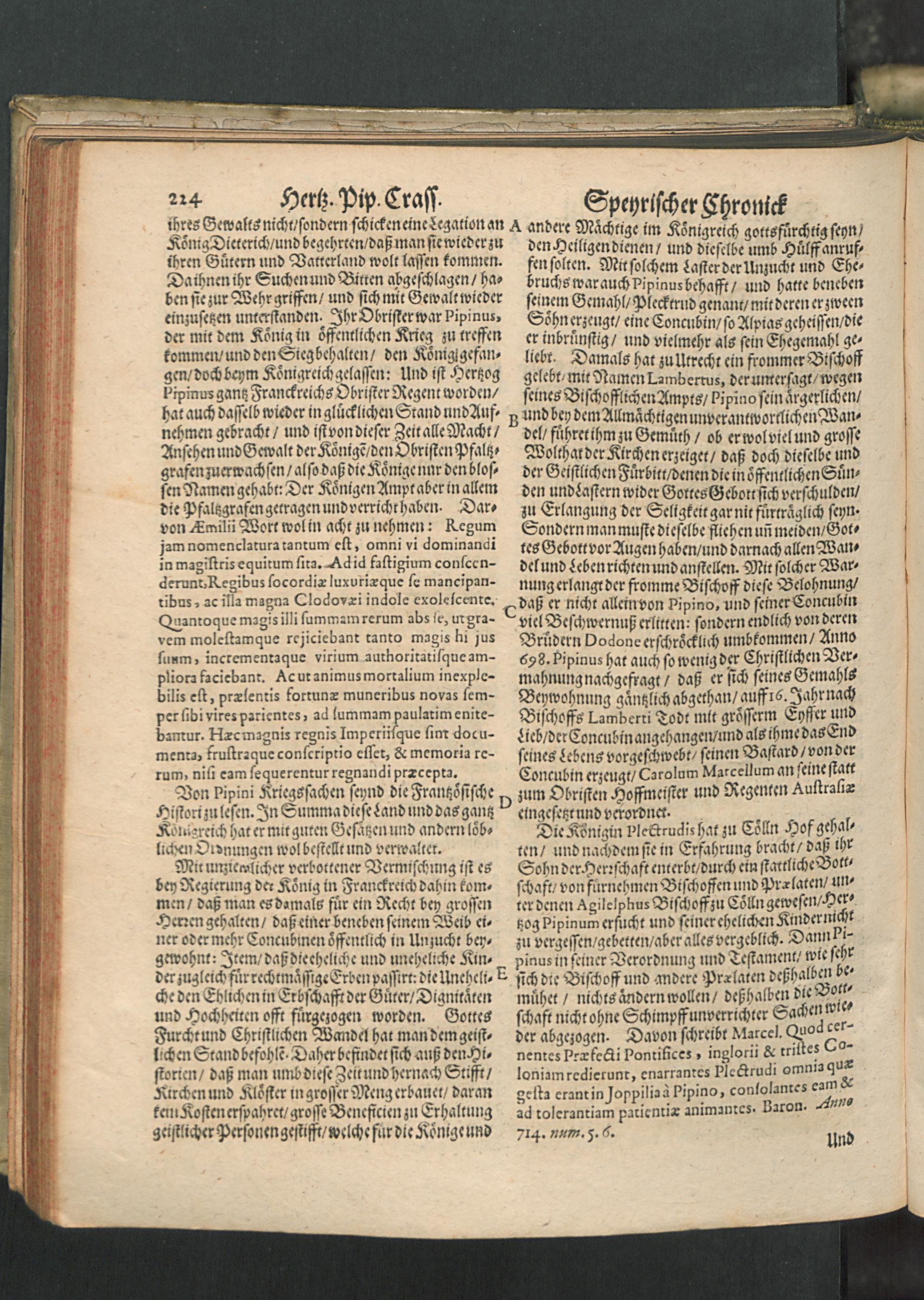 Chronica Der Freyen Reichs-Statt Speyer : Darinn von dreyerley fürnemblich gehandelt/ Erstlich vom Ursprung/ Auffnehmen/ Befreyung/ Beschaffenheit deß Regiments/ Freyheiten/ Privilegien/ Rechten/ Gerechtigkeiten/ denckwürdigen Sachen und Geschichten/ auch underschiedlichen Kriegen und Belägerungen der Statt Speyr: Zum andern/ von Anfang und Auffrichtung deß Teutschen Reichs/ desselben Regierung durch König und Kayser/ und was es jeder Zeit ins gemein mit demselben/ und insonders mit den Ehrbahren Frey und Reichs-Stätten vor Gestalt gehabt... Zum dritten/ von Anfang und Beschreibung der Bischoffen zu Speyr/ und deß Speyrischen Bisthumbs / Mit Fleiß zusammen getragen Durch Christophorum Lehmann