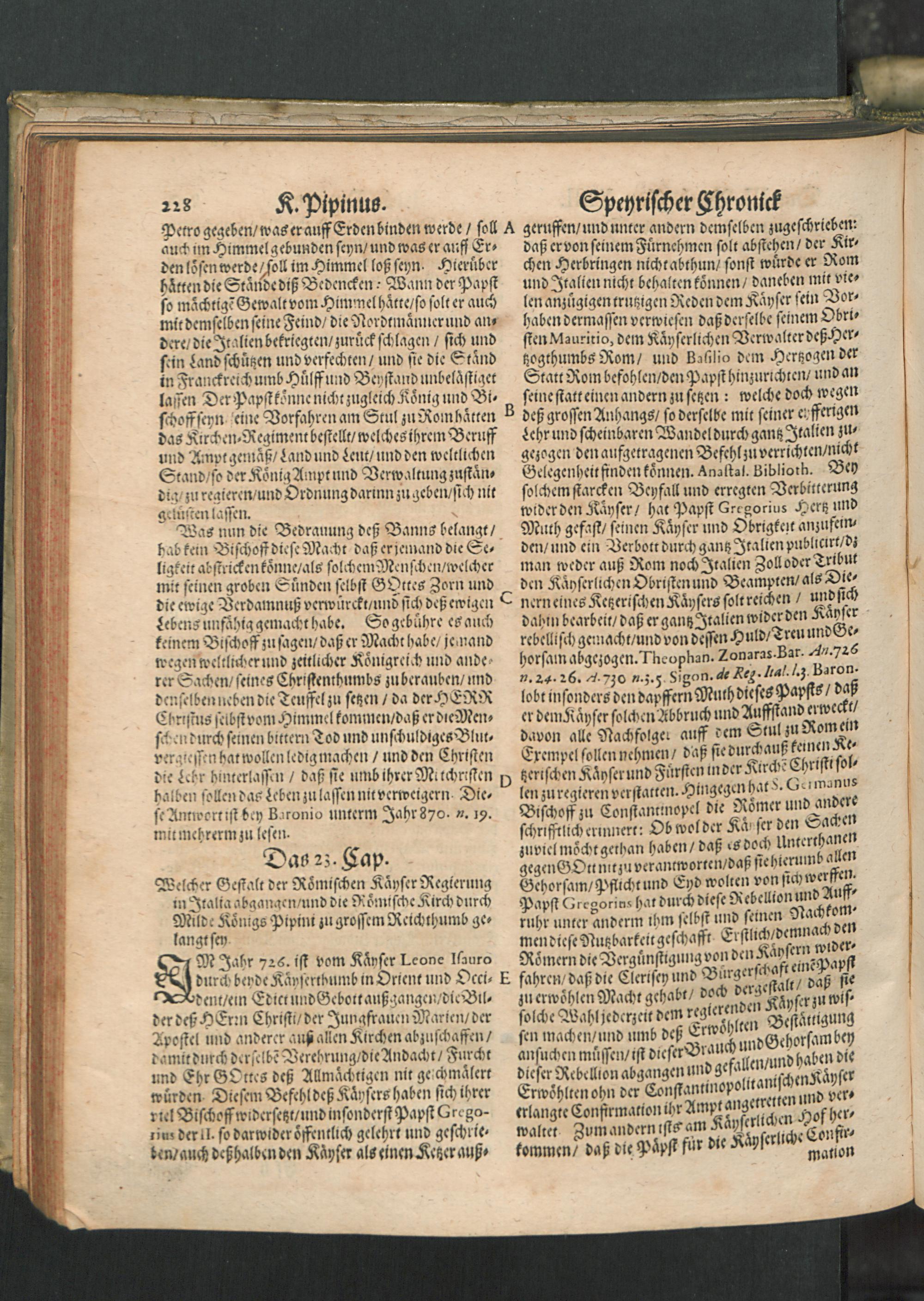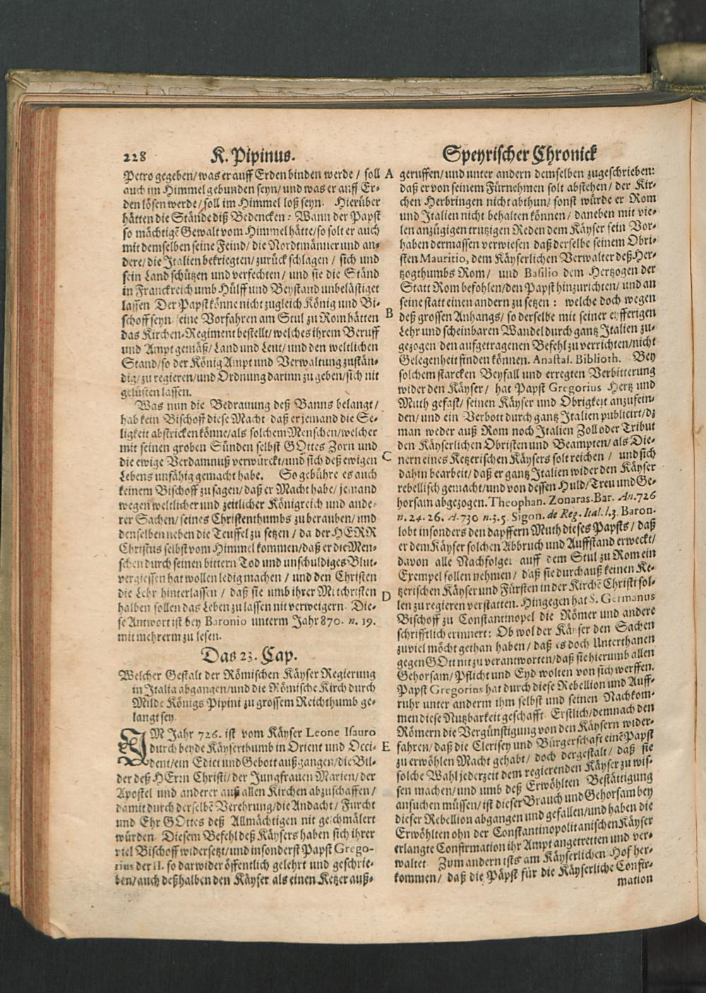 Chronica Der Freyen Reichs-Statt Speyer : Darinn von dreyerley fürnemblich gehandelt/ Erstlich vom Ursprung/ Auffnehmen/ Befreyung/ Beschaffenheit deß Regiments/ Freyheiten/ Privilegien/ Rechten/ Gerechtigkeiten/ denckwürdigen Sachen und Geschichten/ auch underschiedlichen Kriegen und Belägerungen der Statt Speyr: Zum andern/ von Anfang und Auffrichtung deß Teutschen Reichs/ desselben Regierung durch König und Kayser/ und was es jeder Zeit ins gemein mit demselben/ und insonders mit den Ehrbahren Frey und Reichs-Stätten vor Gestalt gehabt... Zum dritten/ von Anfang und Beschreibung der Bischoffen zu Speyr/ und deß Speyrischen Bisthumbs / Mit Fleiß zusammen getragen Durch Christophorum Lehmann