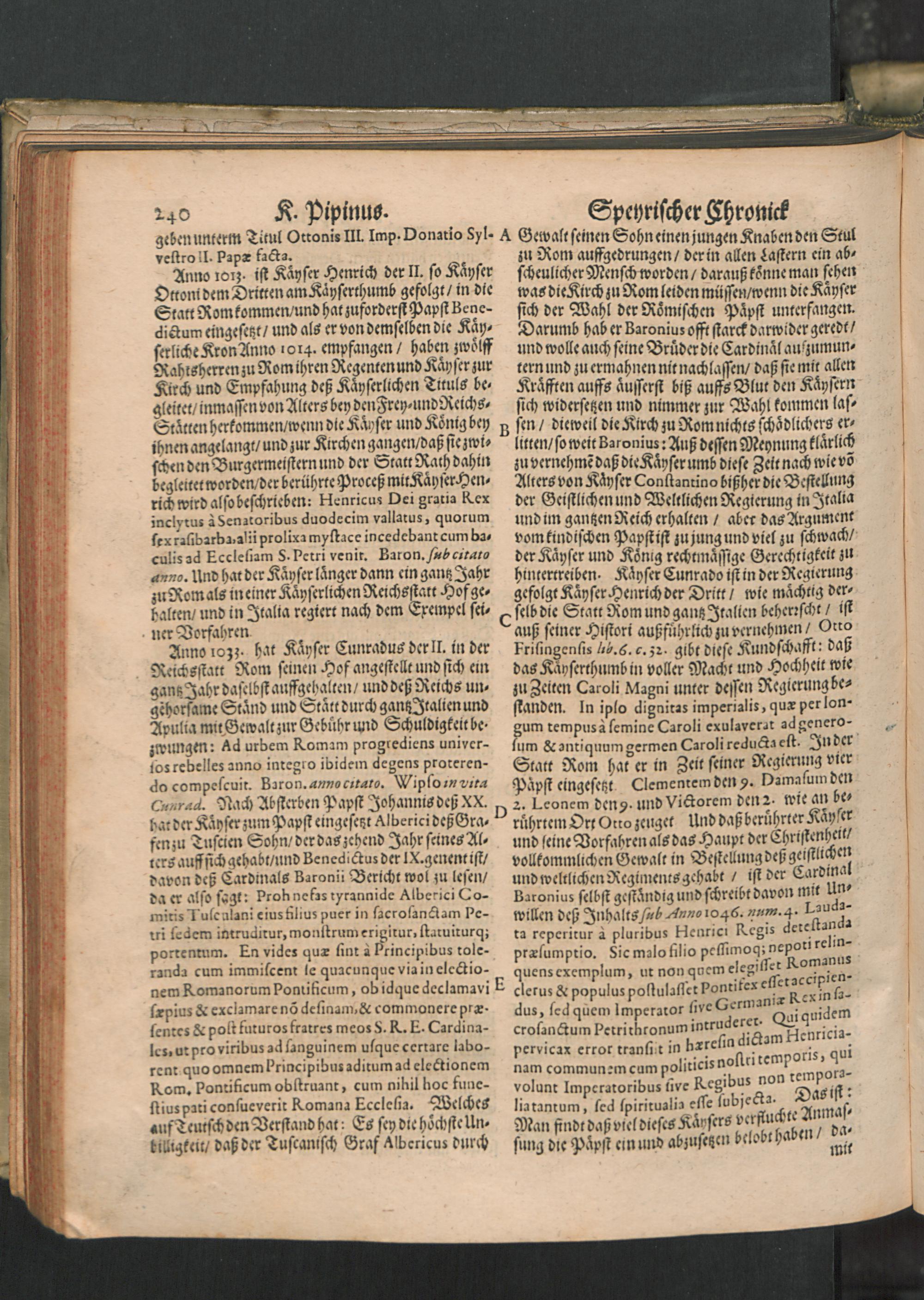 Chronica Der Freyen Reichs-Statt Speyer : Darinn von dreyerley fürnemblich gehandelt/ Erstlich vom Ursprung/ Auffnehmen/ Befreyung/ Beschaffenheit deß Regiments/ Freyheiten/ Privilegien/ Rechten/ Gerechtigkeiten/ denckwürdigen Sachen und Geschichten/ auch underschiedlichen Kriegen und Belägerungen der Statt Speyr: Zum andern/ von Anfang und Auffrichtung deß Teutschen Reichs/ desselben Regierung durch König und Kayser/ und was es jeder Zeit ins gemein mit demselben/ und insonders mit den Ehrbahren Frey und Reichs-Stätten vor Gestalt gehabt... Zum dritten/ von Anfang und Beschreibung der Bischoffen zu Speyr/ und deß Speyrischen Bisthumbs / Mit Fleiß zusammen getragen Durch Christophorum Lehmann