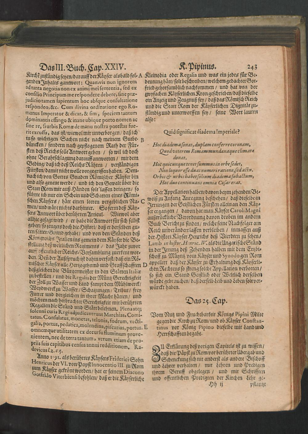 Chronica Der Freyen Reichs-Statt Speyer : Darinn von dreyerley fürnemblich gehandelt/ Erstlich vom Ursprung/ Auffnehmen/ Befreyung/ Beschaffenheit deß Regiments/ Freyheiten/ Privilegien/ Rechten/ Gerechtigkeiten/ denckwürdigen Sachen und Geschichten/ auch underschiedlichen Kriegen und Belägerungen der Statt Speyr: Zum andern/ von Anfang und Auffrichtung deß Teutschen Reichs/ desselben Regierung durch König und Kayser/ und was es jeder Zeit ins gemein mit demselben/ und insonders mit den Ehrbahren Frey und Reichs-Stätten vor Gestalt gehabt... Zum dritten/ von Anfang und Beschreibung der Bischoffen zu Speyr/ und deß Speyrischen Bisthumbs / Mit Fleiß zusammen getragen Durch Christophorum Lehmann
