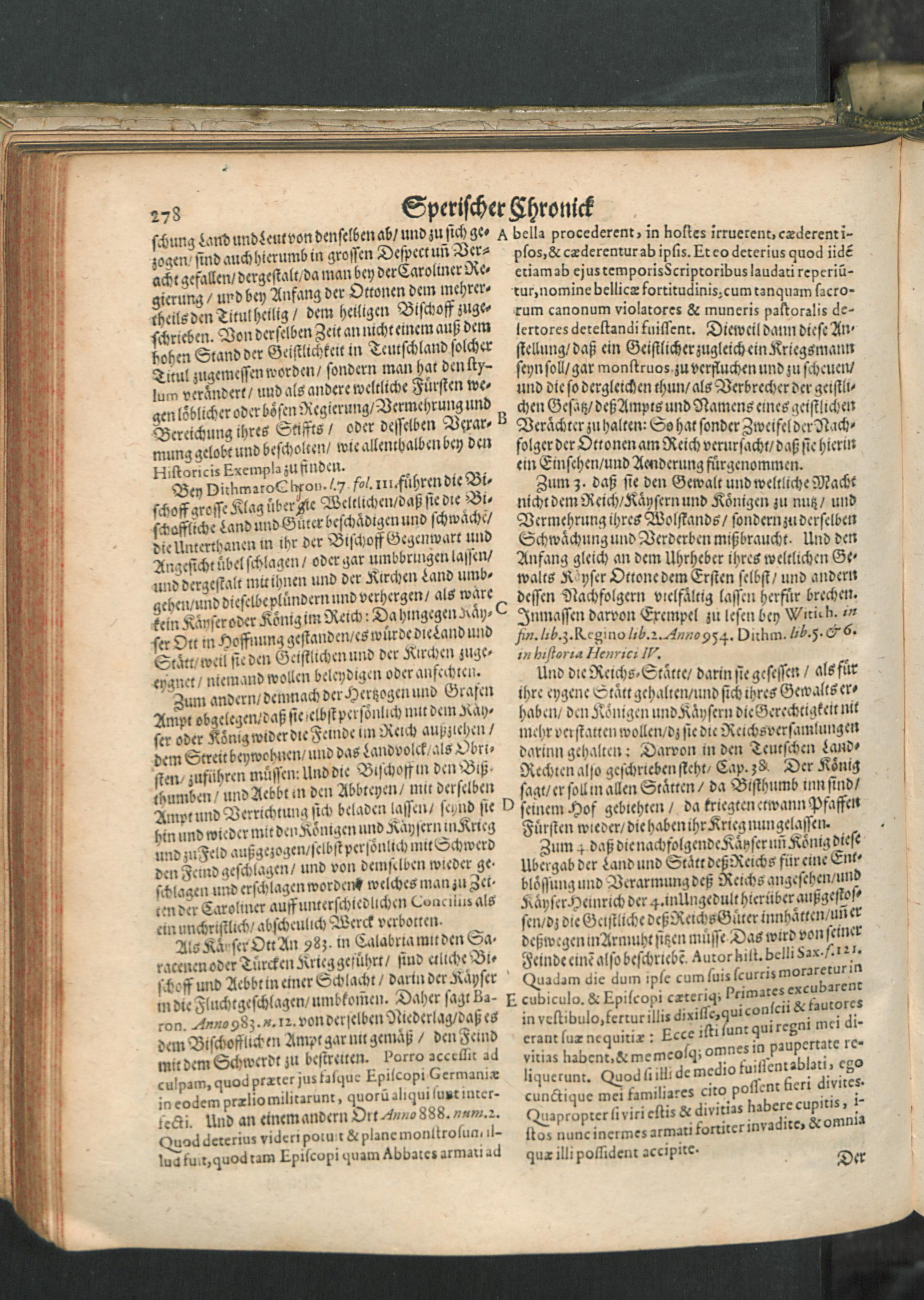 Chronica Der Freyen Reichs-Statt Speyer : Darinn von dreyerley fürnemblich gehandelt/ Erstlich vom Ursprung/ Auffnehmen/ Befreyung/ Beschaffenheit deß Regiments/ Freyheiten/ Privilegien/ Rechten/ Gerechtigkeiten/ denckwürdigen Sachen und Geschichten/ auch underschiedlichen Kriegen und Belägerungen der Statt Speyr: Zum andern/ von Anfang und Auffrichtung deß Teutschen Reichs/ desselben Regierung durch König und Kayser/ und was es jeder Zeit ins gemein mit demselben/ und insonders mit den Ehrbahren Frey und Reichs-Stätten vor Gestalt gehabt... Zum dritten/ von Anfang und Beschreibung der Bischoffen zu Speyr/ und deß Speyrischen Bisthumbs / Mit Fleiß zusammen getragen Durch Christophorum Lehmann