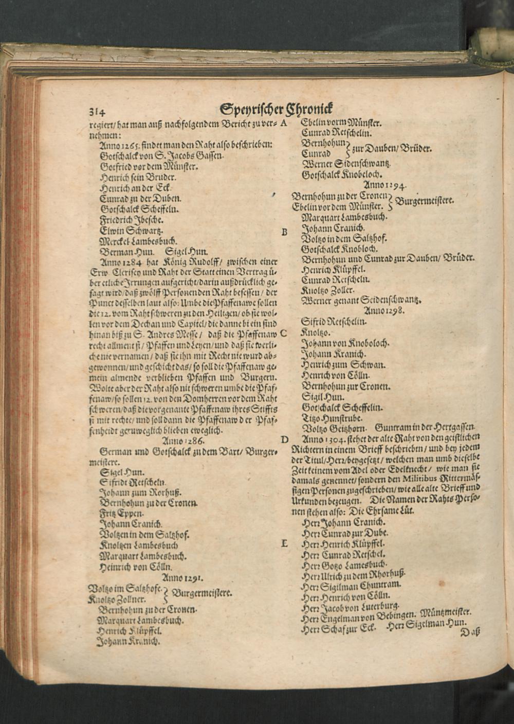 Chronica Der Freyen Reichs-Statt Speyer : Darinn von dreyerley fürnemblich gehandelt/ Erstlich vom Ursprung/ Auffnehmen/ Befreyung/ Beschaffenheit deß Regiments/ Freyheiten/ Privilegien/ Rechten/ Gerechtigkeiten/ denckwürdigen Sachen und Geschichten/ auch underschiedlichen Kriegen und Belägerungen der Statt Speyr: Zum andern/ von Anfang und Auffrichtung deß Teutschen Reichs/ desselben Regierung durch König und Kayser/ und was es jeder Zeit ins gemein mit demselben/ und insonders mit den Ehrbahren Frey und Reichs-Stätten vor Gestalt gehabt... Zum dritten/ von Anfang und Beschreibung der Bischoffen zu Speyr/ und deß Speyrischen Bisthumbs / Mit Fleiß zusammen getragen Durch Christophorum Lehmann