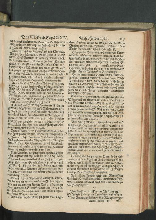 Chronica Der Freyen Reichs-Statt Speyer : Darinn von dreyerley fürnemblich gehandelt/ Erstlich vom Ursprung/ Auffnehmen/ Befreyung/ Beschaffenheit deß Regiments/ Freyheiten/ Privilegien/ Rechten/ Gerechtigkeiten/ denckwürdigen Sachen und Geschichten/ auch underschiedlichen Kriegen und Belägerungen der Statt Speyr: Zum andern/ von Anfang und Auffrichtung deß Teutschen Reichs/ desselben Regierung durch König und Kayser/ und was es jeder Zeit ins gemein mit demselben/ und insonders mit den Ehrbahren Frey und Reichs-Stätten vor Gestalt gehabt... Zum dritten/ von Anfang und Beschreibung der Bischoffen zu Speyr/ und deß Speyrischen Bisthumbs / Mit Fleiß zusammen getragen Durch Christophorum Lehmann