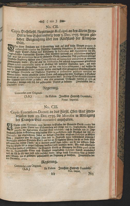 Warhaffter Status Causae und rechtliche Deduction derer Gründe, vermög welcher das jetzt-regierende Hochfürstl. Hauß Pfaltz-Zweybrücken behauptet/ daß die beyde Frey-Herren von Schorrenburg ... mit jhrem ... weitern ... Restitutions-Gesuch ... à Limine Judicii abzuweisen seyen : Mit Beylagen à Num. 1. usque 117. inclusive
