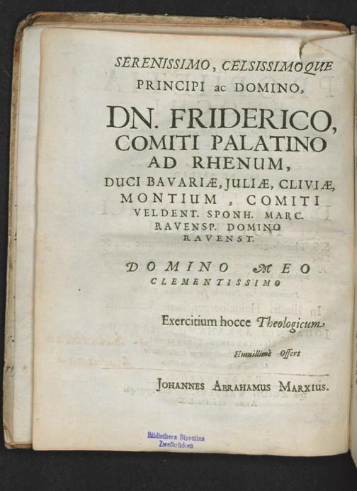 Dissertatio Theologica De Prophetia Enochi, Aliisque Veteris Testamenti Libris Pseudepigraphis / Quam ... Sub Praesidio ... Viri Dn. Joh. Henrici Hottingeri S.S. Theologiae Doctoris, Ejusdemque, ut & Linguarum Orientalium in Academia Heidelbergensi Professoris Celeberrimi ... In Illustri Heidelbergensium Academia Publicae & placideae eruditorum censurae subjicit Johannes Abrahamus Marxius, Meysenheimio-Bipontinus in hyberno Theologorum Auditorio Ad diem 1. Decembris, horis solitis