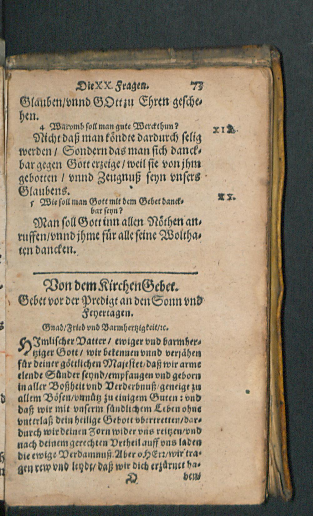 Catechismus, Oder Kurtzer Vnterricht Christlicher Lehr/ wie der inn Kirchen vnd Schulen der Churfürstlichen Pfaltz getrieben wird : Sampt den XX. Fragen/ Kirchen Ceremonien vnd Gebeten