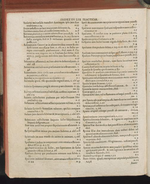 Index titulorum et argumentorum quae habentur in hisce duobus practicarum observationum libris