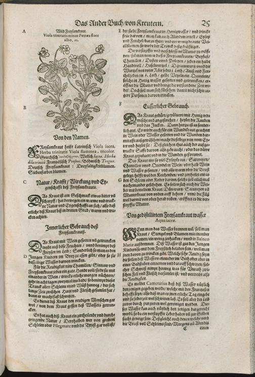 2/3 (1591) D. IACOBI THEODORI || TABERNAEMONTANI || Neuw/ vnd volkommenlich || Kreuterbuch/|| Mit schönen/ künstlichen vnd leblichen Fi=||guren vnnd Conterfeyten/ allerhandt frembder vnd einheymischer || Gewächß/ Kreuter/ Blumen/ Stauden/ Hecken/ Bäume/ auch köstlicher außländischer || Wurtzeln/ Rinden/ Früchten ... || dergleichen vormals nie ans Liecht oder in || Truck kommen.|| Das Ander Theyl.|| ...