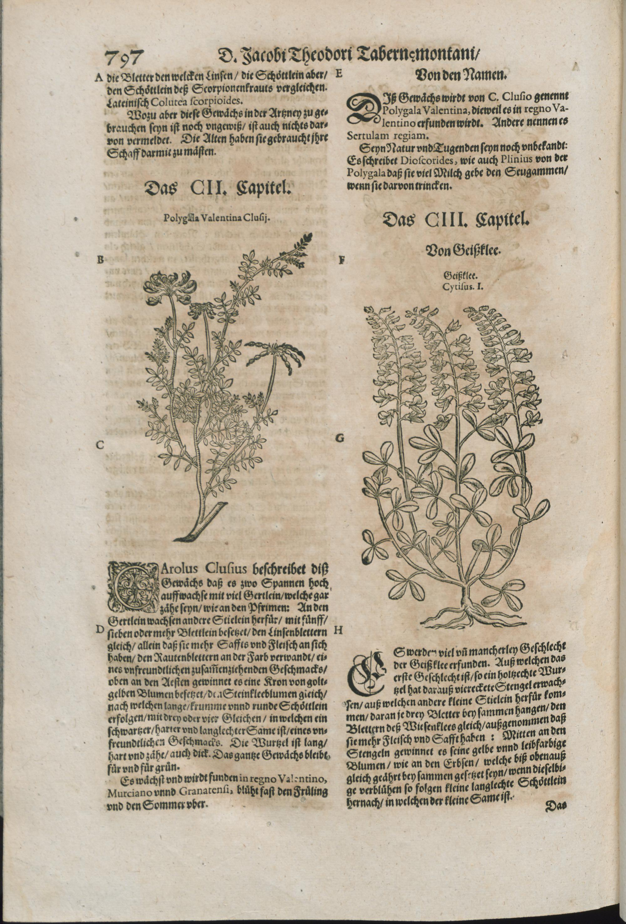 2/3 (1591) D. IACOBI THEODORI || TABERNAEMONTANI || Neuw/ vnd volkommenlich || Kreuterbuch/|| Mit schönen/ künstlichen vnd leblichen Fi=||guren vnnd Conterfeyten/ allerhandt frembder vnd einheymischer || Gewächß/ Kreuter/ Blumen/ Stauden/ Hecken/ Bäume/ auch köstlicher außländischer || Wurtzeln/ Rinden/ Früchten ... || dergleichen vormals nie ans Liecht oder in || Truck kommen.|| Das Ander Theyl.|| ...