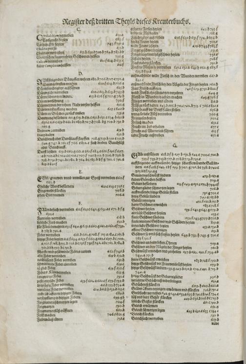 2/3 (1591) D. IACOBI THEODORI || TABERNAEMONTANI || Neuw/ vnd volkommenlich || Kreuterbuch/|| Mit schönen/ künstlichen vnd leblichen Fi=||guren vnnd Conterfeyten/ allerhandt frembder vnd einheymischer || Gewächß/ Kreuter/ Blumen/ Stauden/ Hecken/ Bäume/ auch köstlicher außländischer || Wurtzeln/ Rinden/ Früchten ... || dergleichen vormals nie ans Liecht oder in || Truck kommen.|| Das Ander Theyl.|| ...