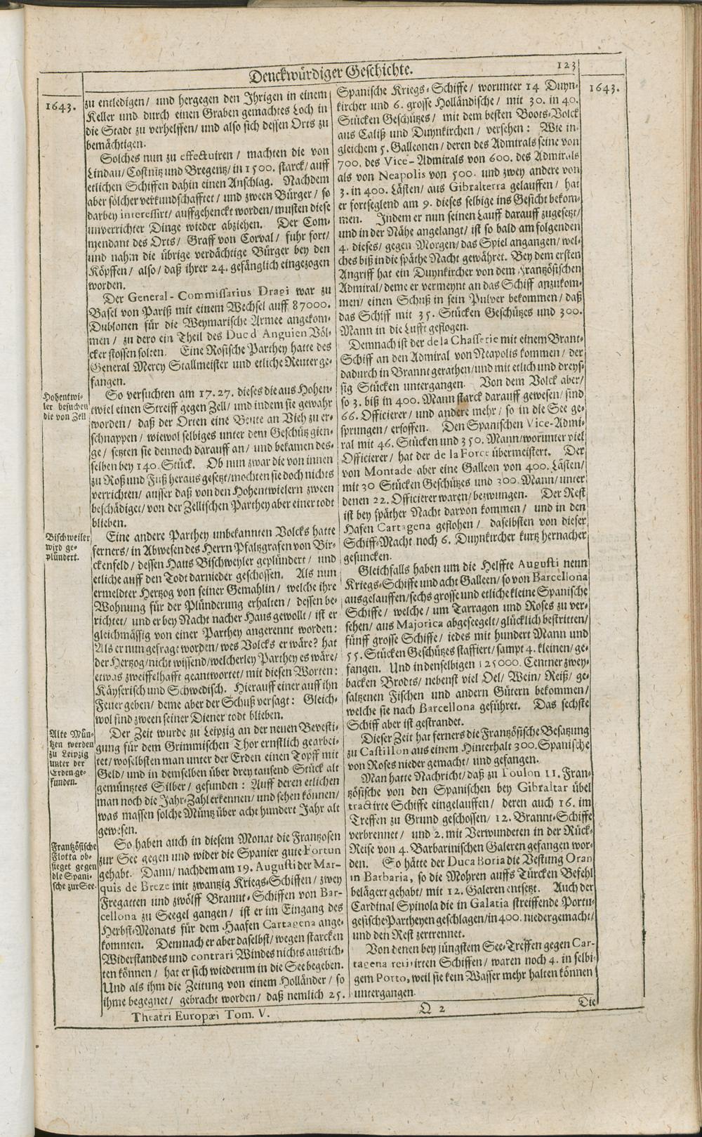 Theatri Europaei Fünffter Theil/ Das ist: Außführliche Beschreibung Aller Denckwürdigen Geschichten/ Die sich in Europa, Als Hoch- und Nieder-Teutschland/ Franckreich/ Hispanien/ Jtalien/ Groß-Britannien/ Dennemarck/ Schweden/ Polen/ Moscaw/ Böhmen/ Hungarn/ Siebenbürgen/ Wallachey/ Moldaw: Jn der Türckey und Barbarey ... vom Jahr 1643. biß ins 1647. Jahr/ allerseits begeben und verlauffen / [Johann Peter Lotichius]
