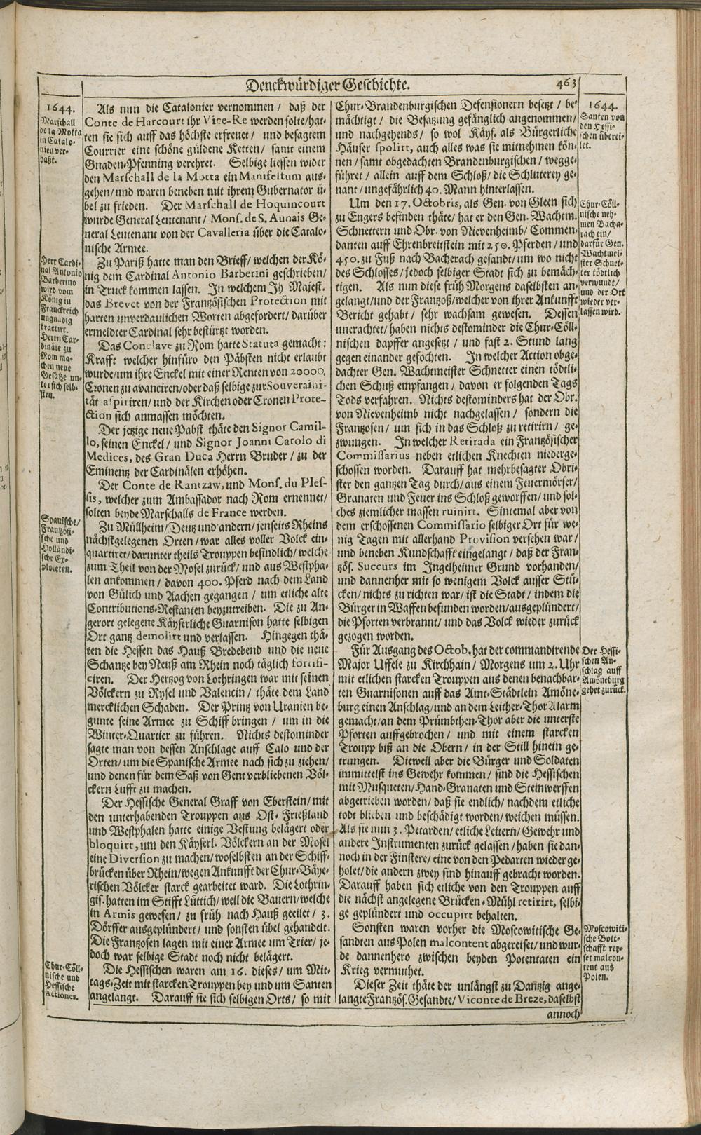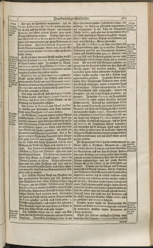 Theatri Europaei Fünffter Theil/ Das ist: Außführliche Beschreibung Aller Denckwürdigen Geschichten/ Die sich in Europa, Als Hoch- und Nieder-Teutschland/ Franckreich/ Hispanien/ Jtalien/ Groß-Britannien/ Dennemarck/ Schweden/ Polen/ Moscaw/ Böhmen/ Hungarn/ Siebenbürgen/ Wallachey/ Moldaw: Jn der Türckey und Barbarey ... vom Jahr 1643. biß ins 1647. Jahr/ allerseits begeben und verlauffen / [Johann Peter Lotichius]