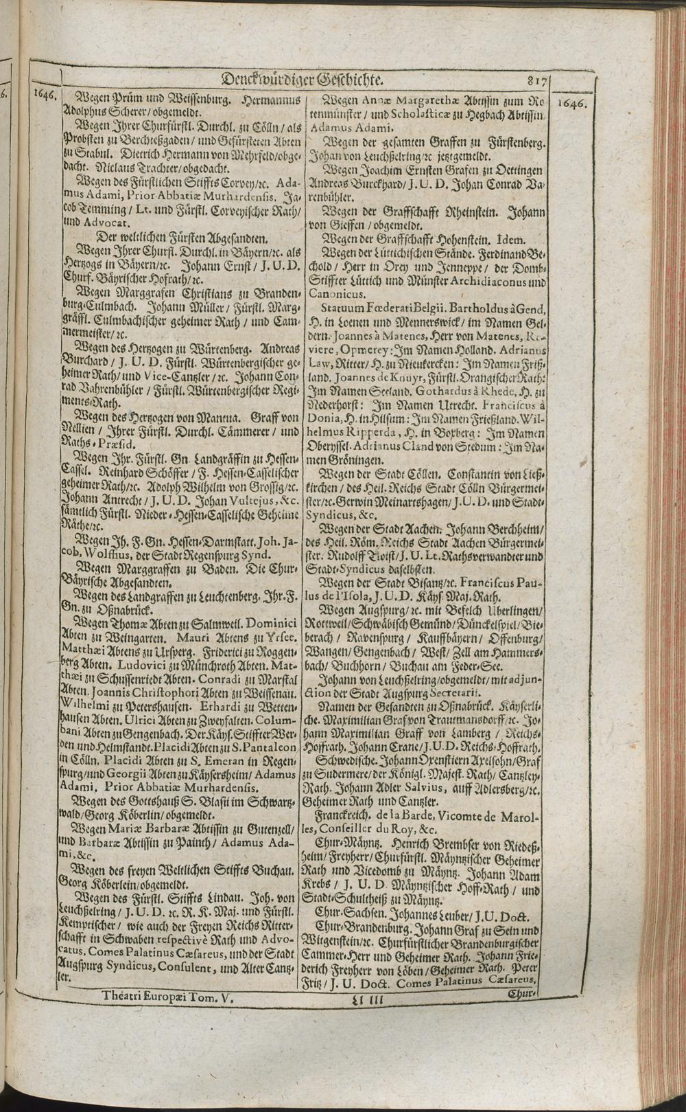 Theatri Europaei Fünffter Theil/ Das ist: Außführliche Beschreibung Aller Denckwürdigen Geschichten/ Die sich in Europa, Als Hoch- und Nieder-Teutschland/ Franckreich/ Hispanien/ Jtalien/ Groß-Britannien/ Dennemarck/ Schweden/ Polen/ Moscaw/ Böhmen/ Hungarn/ Siebenbürgen/ Wallachey/ Moldaw: Jn der Türckey und Barbarey ... vom Jahr 1643. biß ins 1647. Jahr/ allerseits begeben und verlauffen / [Johann Peter Lotichius]
