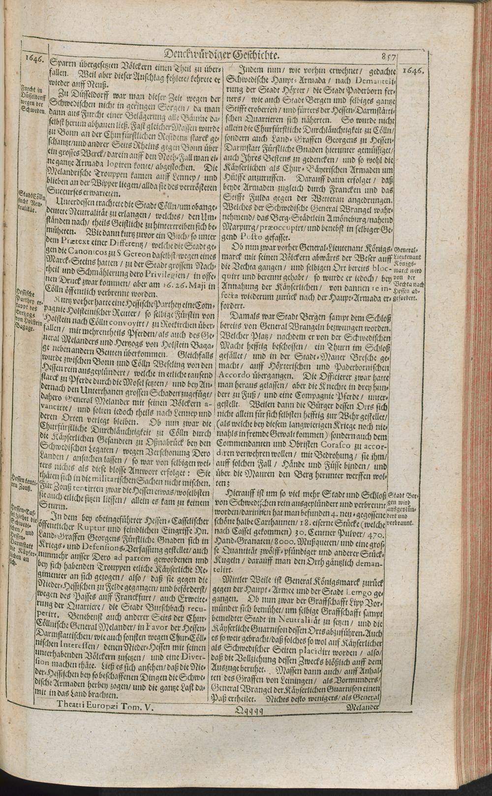 Theatri Europaei Fünffter Theil/ Das ist: Außführliche Beschreibung Aller Denckwürdigen Geschichten/ Die sich in Europa, Als Hoch- und Nieder-Teutschland/ Franckreich/ Hispanien/ Jtalien/ Groß-Britannien/ Dennemarck/ Schweden/ Polen/ Moscaw/ Böhmen/ Hungarn/ Siebenbürgen/ Wallachey/ Moldaw: Jn der Türckey und Barbarey ... vom Jahr 1643. biß ins 1647. Jahr/ allerseits begeben und verlauffen / [Johann Peter Lotichius]