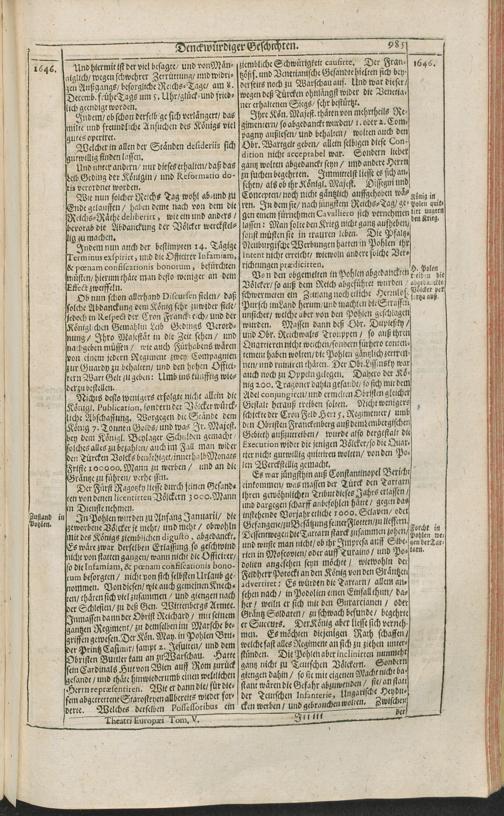 Theatri Europaei Fünffter Theil/ Das ist: Außführliche Beschreibung Aller Denckwürdigen Geschichten/ Die sich in Europa, Als Hoch- und Nieder-Teutschland/ Franckreich/ Hispanien/ Jtalien/ Groß-Britannien/ Dennemarck/ Schweden/ Polen/ Moscaw/ Böhmen/ Hungarn/ Siebenbürgen/ Wallachey/ Moldaw: Jn der Türckey und Barbarey ... vom Jahr 1643. biß ins 1647. Jahr/ allerseits begeben und verlauffen / [Johann Peter Lotichius]