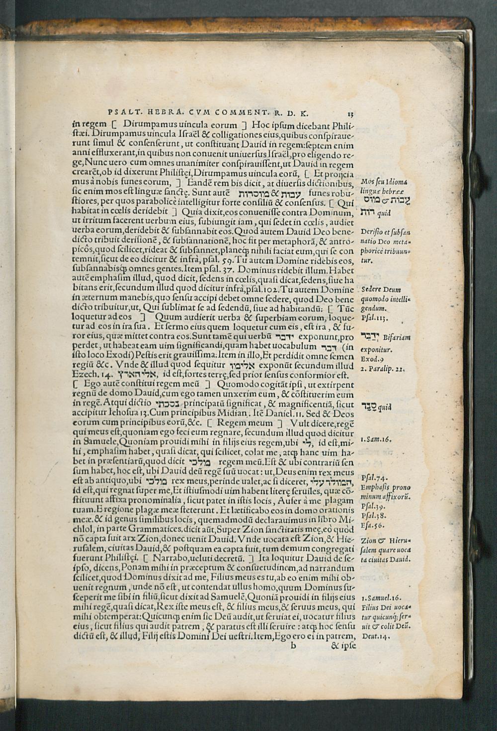 ... || COMMENTARIVM || HEBRAICVM RABBI DAVID KIMHI,|| IN DECEM PRIMOS PSALMOS DAVIDICOS, CVM || uersione latina è regione, pro exercitamento omnibus || hebraicae linguae studiosis, quibus ad legen-||da Hebraeorũ commentaria animus || est. Per PAVLVM FAGIVM.||