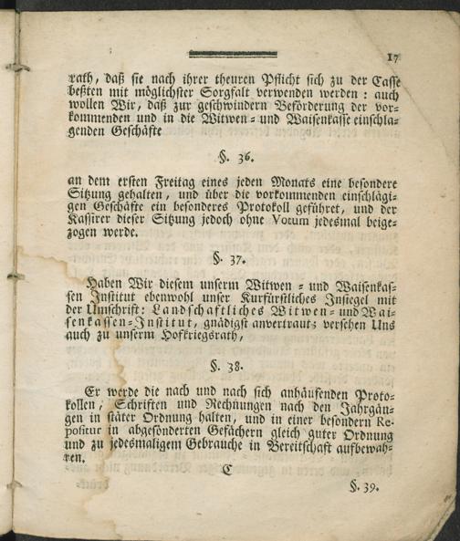 Verordnung über das Kurtrierisch-Landschaftliches Militär-Wittwen- und Waisen-Kasse-Institut : vom 29. Jänner 1790 / [Clemens Wenceslaus Kurfürst]