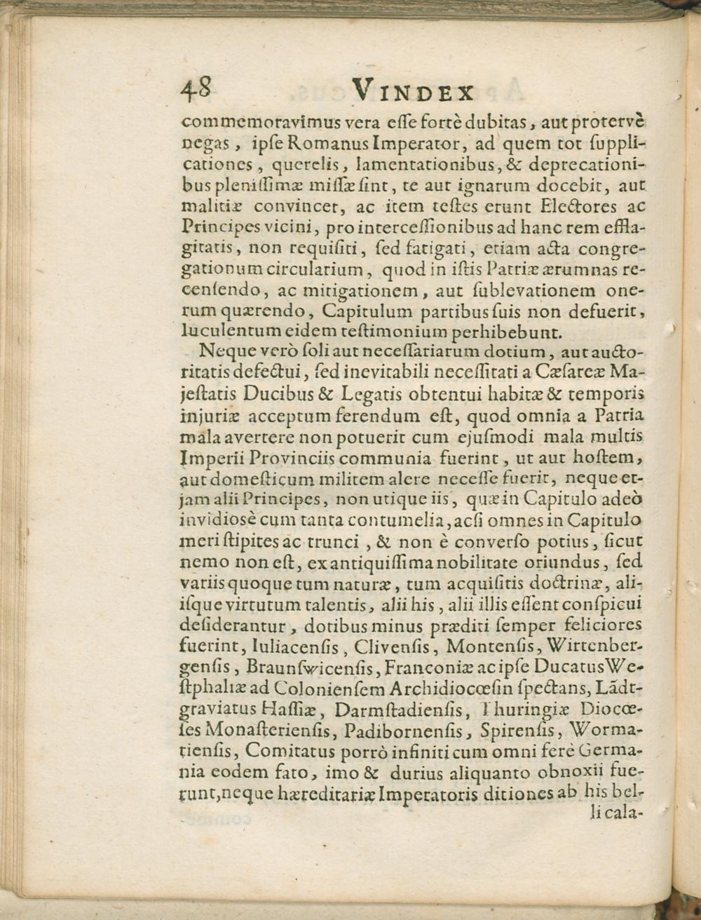 Vindex Apolegeticvs : Pro veritatis, ac innocentiae assertione, in favorem Reverendissimi & Perillustris Metropolitani Capituli Trevirensis Dominorum D. Ioannis Gvvilhelmi Hufman de Namedeji, ejusdem Capituli Praepositi, & Consortum, cuidam nuper sub Prodomi manifestandi status Trevirensis titulo, infinitis co[m]vitis, calu[m]niis, &, mendaciis scatenti, famoso libello auctore quodam Mysadelpho epoptâ, cui inde collo per canabina[m] fenestram inserto proprio epopseos suo perspicillio meritò videndum sit, typis vulgato oppositus / Per Apollinarem Veridicum