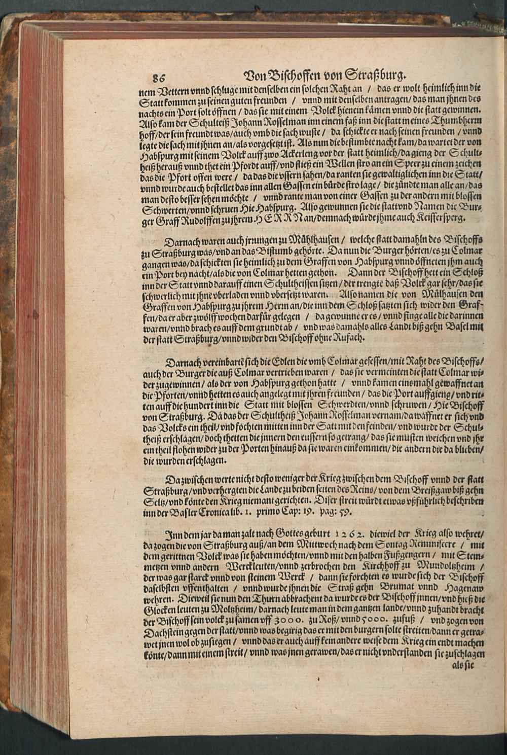 CHRONICON ALSATIAE.|| Edelsasser Cronick || vnnd außf[ue]rliche beschrei=||bung des vntern Elsasses am Rhein=||strom/ auch desselben f[ue]rnem̃er St[ae]tt/ als Straßburg/ Schlet=||statt/ Hagenaw/ Weissenburg/ vnd anderer der enden gelegener St[ae]tt/ Schl[oe]s=||ser/ Cl[oe]ster/ Stifft/ M[ae]rckt/ Flecken vnd D[oe]rffer. Als auch der Landgraffschafft/ vñ Bisthumbs Straßburg gehabter || Landgraffen/ Bischoffen/ sampt ermeldten Lands Fürstenthumben/ Graff vnd Herrschafften/ Adenlicher/|| vnd Burgerlicher Geschlechter/ jhrer Genealogien/ St[ae]mmen/ geburts Linien/|| Wappen vnd Cleinodien.|| Darinn jhre her vnd ankunfften/ leben/ handlung/ thaten/ auch darinnẽ von an=||fang dessen biß auff gegenwertiges 1592. Jar gedenckw[ue]rdigen vorgangene geschichten ... || beschrieben/ vnd ... || an tag gegeben worden.|| Durch ... Herrn Bernhart Hertzogen/ dieser zeit Hanaw Liechten=||bergischen Amptmann zu W[oe]rdt.||