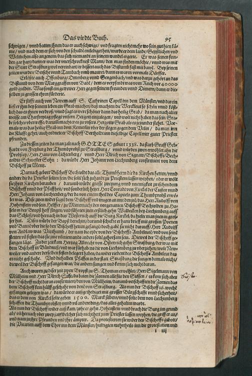 CHRONICON ALSATIAE.|| Edelsasser Cronick || vnnd außf[ue]rliche beschrei=||bung des vntern Elsasses am Rhein=||strom/ auch desselben f[ue]rnem̃er St[ae]tt/ als Straßburg/ Schlet=||statt/ Hagenaw/ Weissenburg/ vnd anderer der enden gelegener St[ae]tt/ Schl[oe]s=||ser/ Cl[oe]ster/ Stifft/ M[ae]rckt/ Flecken vnd D[oe]rffer. Als auch der Landgraffschafft/ vñ Bisthumbs Straßburg gehabter || Landgraffen/ Bischoffen/ sampt ermeldten Lands Fürstenthumben/ Graff vnd Herrschafften/ Adenlicher/|| vnd Burgerlicher Geschlechter/ jhrer Genealogien/ St[ae]mmen/ geburts Linien/|| Wappen vnd Cleinodien.|| Darinn jhre her vnd ankunfften/ leben/ handlung/ thaten/ auch darinnẽ von an=||fang dessen biß auff gegenwertiges 1592. Jar gedenckw[ue]rdigen vorgangene geschichten ... || beschrieben/ vnd ... || an tag gegeben worden.|| Durch ... Herrn Bernhart Hertzogen/ dieser zeit Hanaw Liechten=||bergischen Amptmann zu W[oe]rdt.||