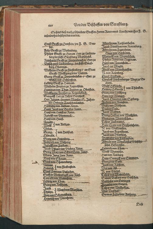 CHRONICON ALSATIAE.|| Edelsasser Cronick || vnnd außf[ue]rliche beschrei=||bung des vntern Elsasses am Rhein=||strom/ auch desselben f[ue]rnem̃er St[ae]tt/ als Straßburg/ Schlet=||statt/ Hagenaw/ Weissenburg/ vnd anderer der enden gelegener St[ae]tt/ Schl[oe]s=||ser/ Cl[oe]ster/ Stifft/ M[ae]rckt/ Flecken vnd D[oe]rffer. Als auch der Landgraffschafft/ vñ Bisthumbs Straßburg gehabter || Landgraffen/ Bischoffen/ sampt ermeldten Lands Fürstenthumben/ Graff vnd Herrschafften/ Adenlicher/|| vnd Burgerlicher Geschlechter/ jhrer Genealogien/ St[ae]mmen/ geburts Linien/|| Wappen vnd Cleinodien.|| Darinn jhre her vnd ankunfften/ leben/ handlung/ thaten/ auch darinnẽ von an=||fang dessen biß auff gegenwertiges 1592. Jar gedenckw[ue]rdigen vorgangene geschichten ... || beschrieben/ vnd ... || an tag gegeben worden.|| Durch ... Herrn Bernhart Hertzogen/ dieser zeit Hanaw Liechten=||bergischen Amptmann zu W[oe]rdt.||