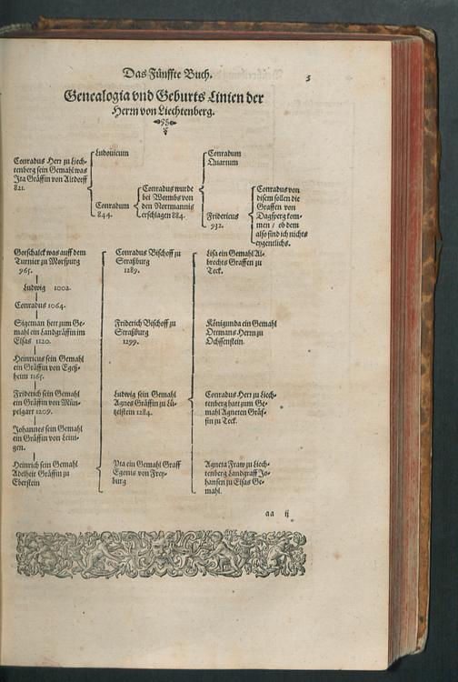 CHRONICON ALSATIAE.|| Edelsasser Cronick || vnnd außf[ue]rliche beschrei=||bung des vntern Elsasses am Rhein=||strom/ auch desselben f[ue]rnem̃er St[ae]tt/ als Straßburg/ Schlet=||statt/ Hagenaw/ Weissenburg/ vnd anderer der enden gelegener St[ae]tt/ Schl[oe]s=||ser/ Cl[oe]ster/ Stifft/ M[ae]rckt/ Flecken vnd D[oe]rffer. Als auch der Landgraffschafft/ vñ Bisthumbs Straßburg gehabter || Landgraffen/ Bischoffen/ sampt ermeldten Lands Fürstenthumben/ Graff vnd Herrschafften/ Adenlicher/|| vnd Burgerlicher Geschlechter/ jhrer Genealogien/ St[ae]mmen/ geburts Linien/|| Wappen vnd Cleinodien.|| Darinn jhre her vnd ankunfften/ leben/ handlung/ thaten/ auch darinnẽ von an=||fang dessen biß auff gegenwertiges 1592. Jar gedenckw[ue]rdigen vorgangene geschichten ... || beschrieben/ vnd ... || an tag gegeben worden.|| Durch ... Herrn Bernhart Hertzogen/ dieser zeit Hanaw Liechten=||bergischen Amptmann zu W[oe]rdt.||