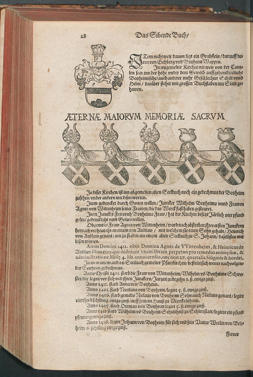 CHRONICON ALSATIAE.|| Edelsasser Cronick || vnnd außf[ue]rliche beschrei=||bung des vntern Elsasses am Rhein=||strom/ auch desselben f[ue]rnem̃er St[ae]tt/ als Straßburg/ Schlet=||statt/ Hagenaw/ Weissenburg/ vnd anderer der enden gelegener St[ae]tt/ Schl[oe]s=||ser/ Cl[oe]ster/ Stifft/ M[ae]rckt/ Flecken vnd D[oe]rffer. Als auch der Landgraffschafft/ vñ Bisthumbs Straßburg gehabter || Landgraffen/ Bischoffen/ sampt ermeldten Lands Fürstenthumben/ Graff vnd Herrschafften/ Adenlicher/|| vnd Burgerlicher Geschlechter/ jhrer Genealogien/ St[ae]mmen/ geburts Linien/|| Wappen vnd Cleinodien.|| Darinn jhre her vnd ankunfften/ leben/ handlung/ thaten/ auch darinnẽ von an=||fang dessen biß auff gegenwertiges 1592. Jar gedenckw[ue]rdigen vorgangene geschichten ... || beschrieben/ vnd ... || an tag gegeben worden.|| Durch ... Herrn Bernhart Hertzogen/ dieser zeit Hanaw Liechten=||bergischen Amptmann zu W[oe]rdt.||